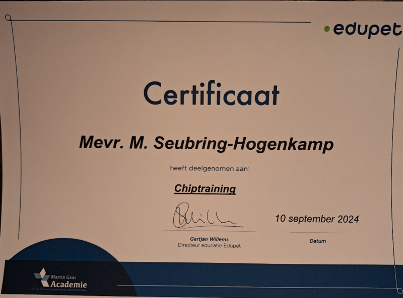 Tevens ben ik gecertificeert microchipper, samenwerkende met PetBase.