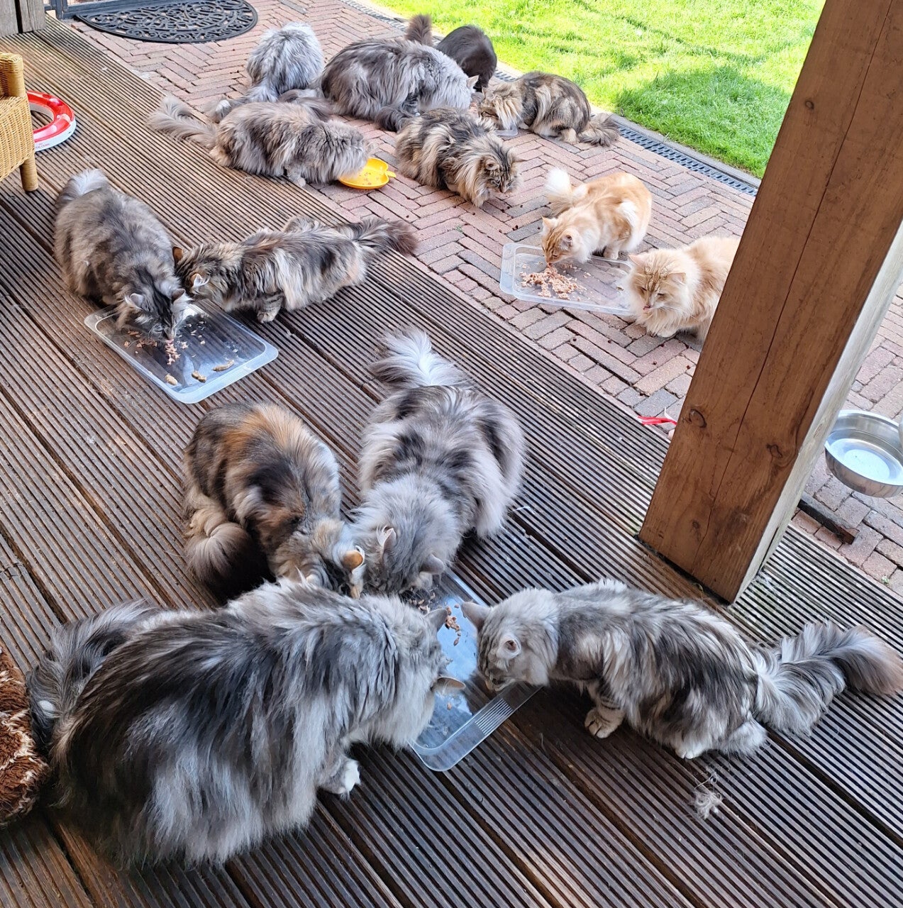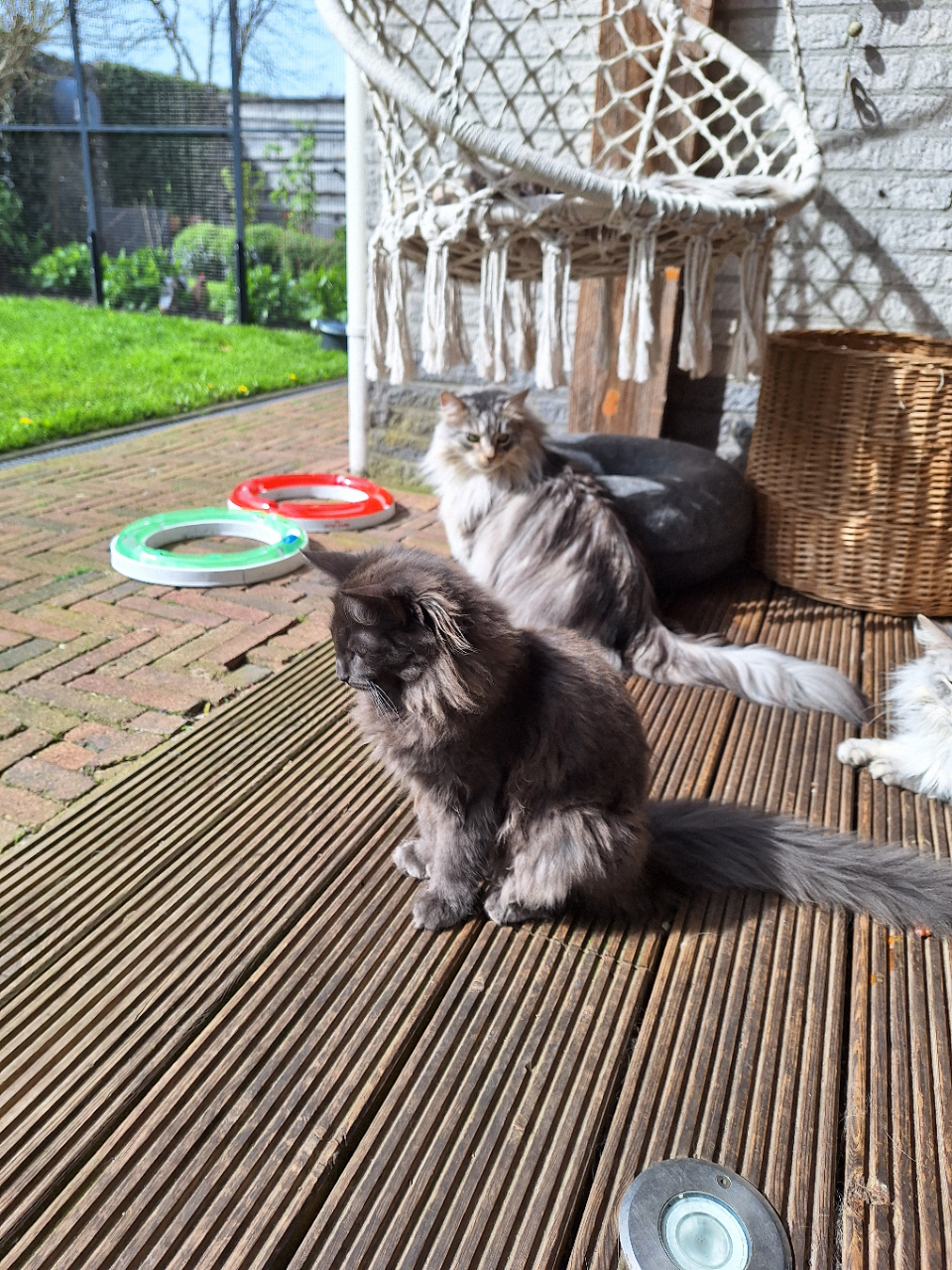 Wij hebben onze dekkater in zijn eigen gedeelte wonen. Dat grenst aan aan huis en de gemeenschappelijke tuin. Nola woont bij hem en vaak zit er ook wel iemand bij hun, zoniet allemaal want daar is het wel heel interessant. En wij kunnen hem er gewoon bij blijven betrekken zonder dat we hem storen in zijn hormonale denken en doen. Een open kater, zoals je dat noemt, is niet te handhaven in huis door het geplas, gesproei en soms ook het macho gedrag wat weer onrust voor allen geeft. En dan zul je de knop om moeten zetten en het voor de kater zo goed mogelijk faciliteren. Een redelijk vrij leven, met een taak. Net zoals onze open poezen dat ook hebben. En de gesloten gaan mee naar show. Iedereen doet wat!