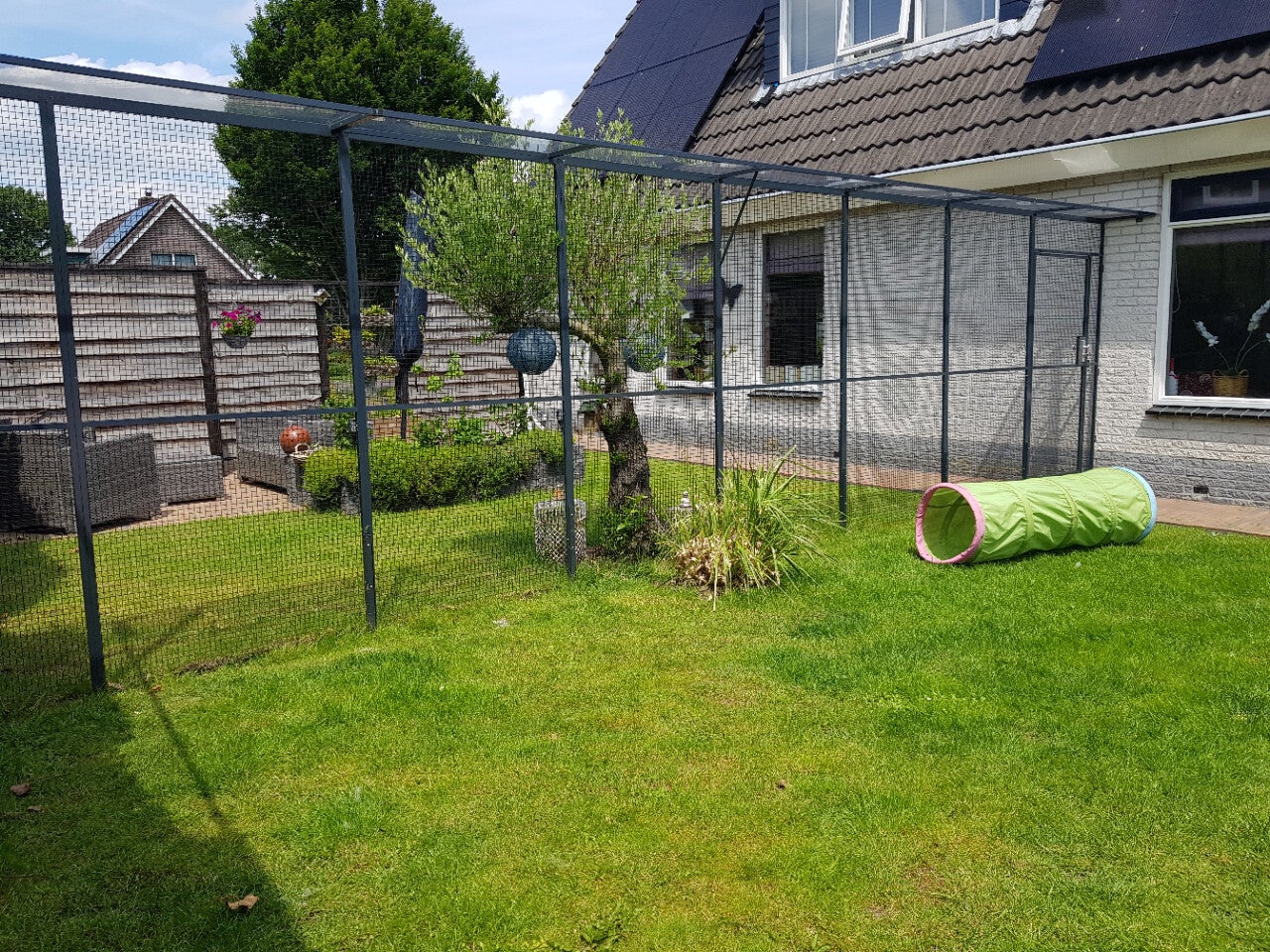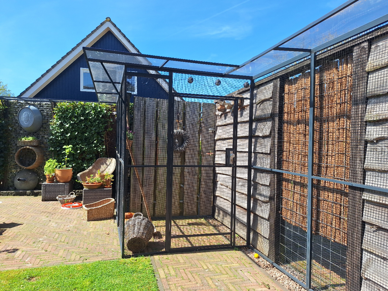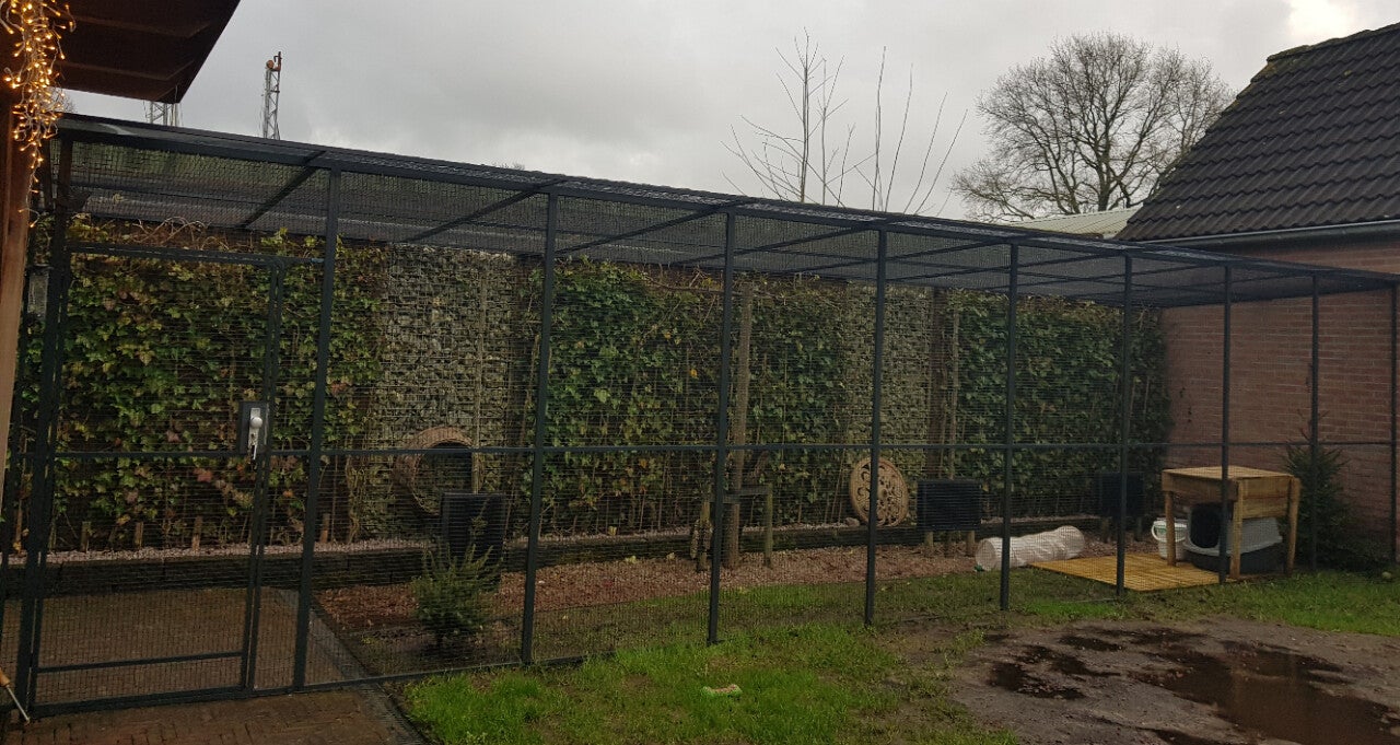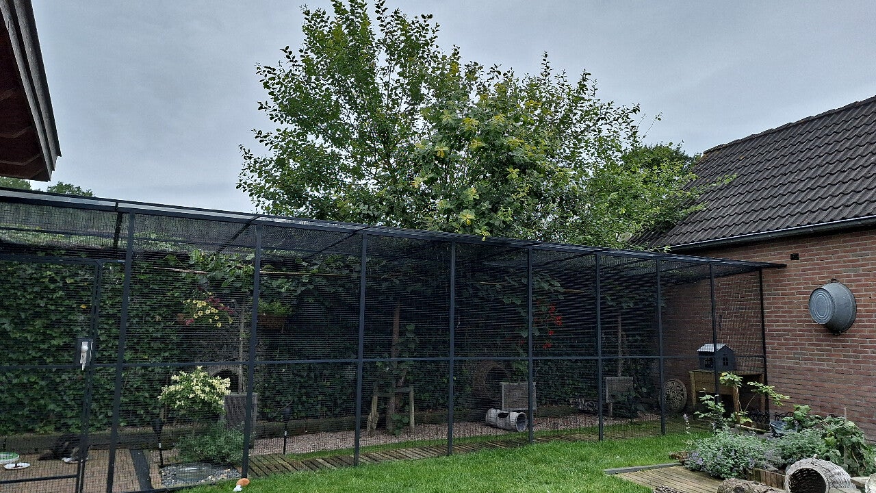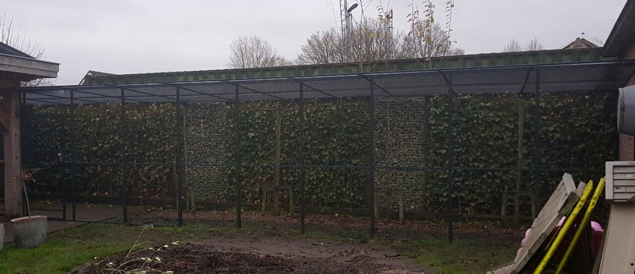 Winter 2021/2022: Wij hebben de rennen laten plaatsen door Volierebouw Aduard. We hadden specifieke wensen en wat moeilijke punten. Wegens de complexiteit kwamen ze zelf opmeten en binnen 2 dagen stond alles. Super!