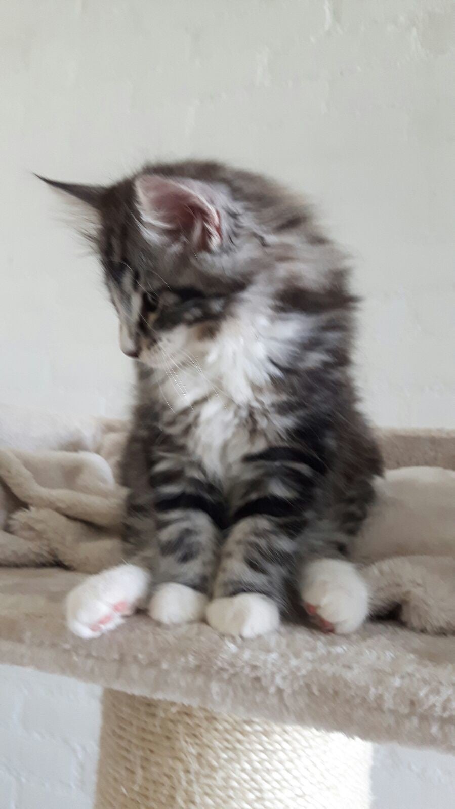 Hij heeft een prachtige gemarmerde vacht en is een heerlijke beer met op de leeftijd van 4 maanden al een gewicht van 3,5 kilo.