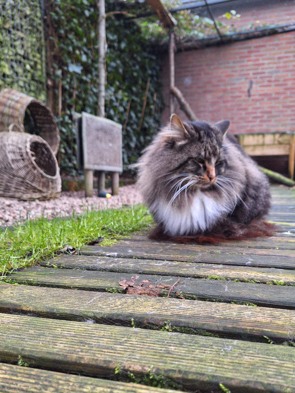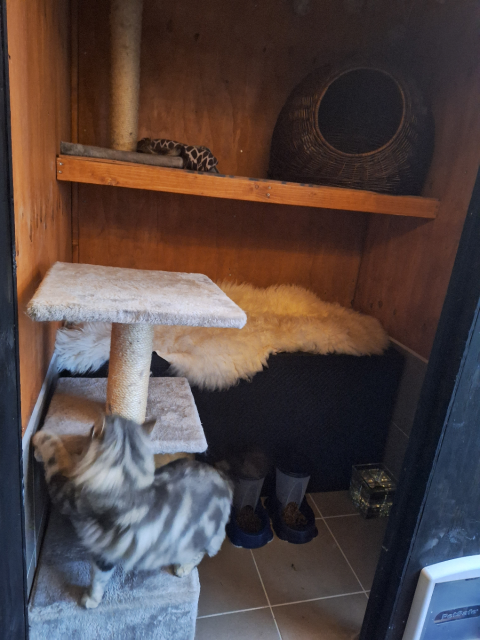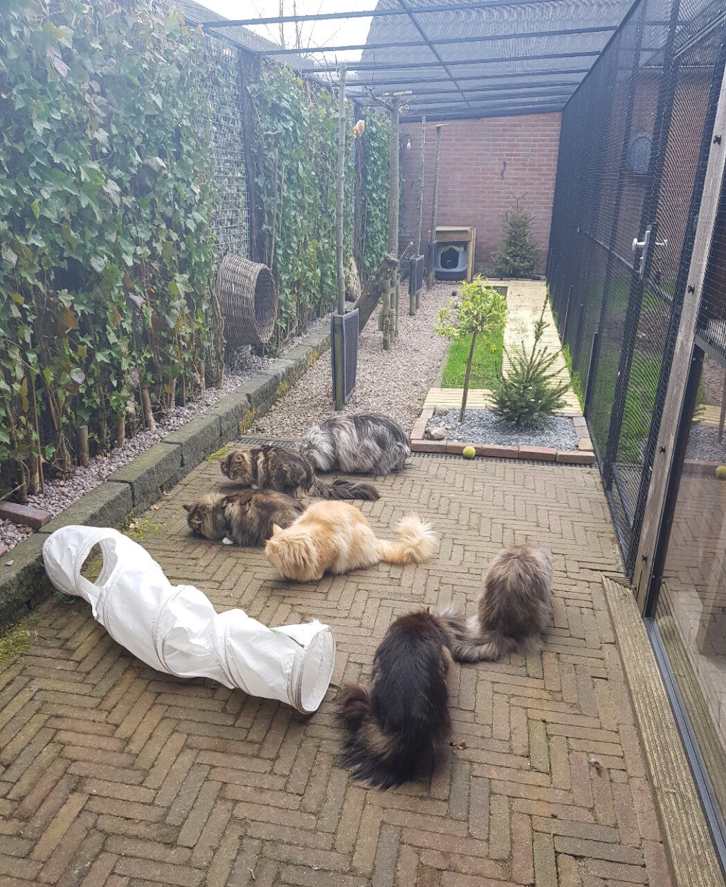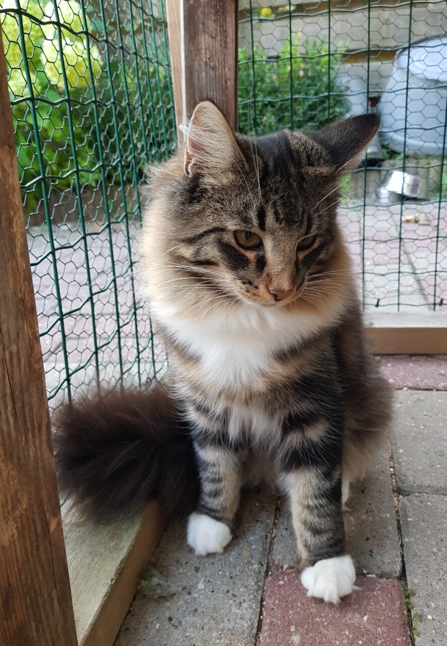 2022: Kjell is zijn actieve leven als dekkater begonnen. Op welke manier dan ook hebben de dieren bij ons zo hun functie. Van allemaal wordt niet alleen gehouden maar zeer zeker ook het beste voor gezorgd. Een open dekkater zoals je dat noemt, is indien ze plassen en sproeien in een beetje normaal huishouden niet te handhaven. Een eigen verblijf geeft ook rust en duidelijkheid voor de kater zelf. Kjell ziet zijn schuur, schuilhok met verblijf/slaaphok en 13 meter lange ren dan ook echt als zijn territorium. Hij grenst aan huis en de gemeenschappelijke tuin, met regelmaat op de dag kan er ook een andere kat, of hond, bij hem komen. En die willen graag daar heen want bij Kjell is het stoer, daar let hooman-mama niet zo op je, daar mag je plassen. De komende maanden gaan we sowieso met Kjell zijn tuin en de gemeenschappelijke tuin bezig voor speel en klim mogelijkheden en begroeiing. Vrij rond laten lopen in huis is geen doen maar dan moet het wel het leukste onderkomen/verblijf zijn die wij kunnen bedenken. Zolang hij happy is en zichzelf niet verwaarloosd kan dit. Wij monitoren dit natuurlijk.