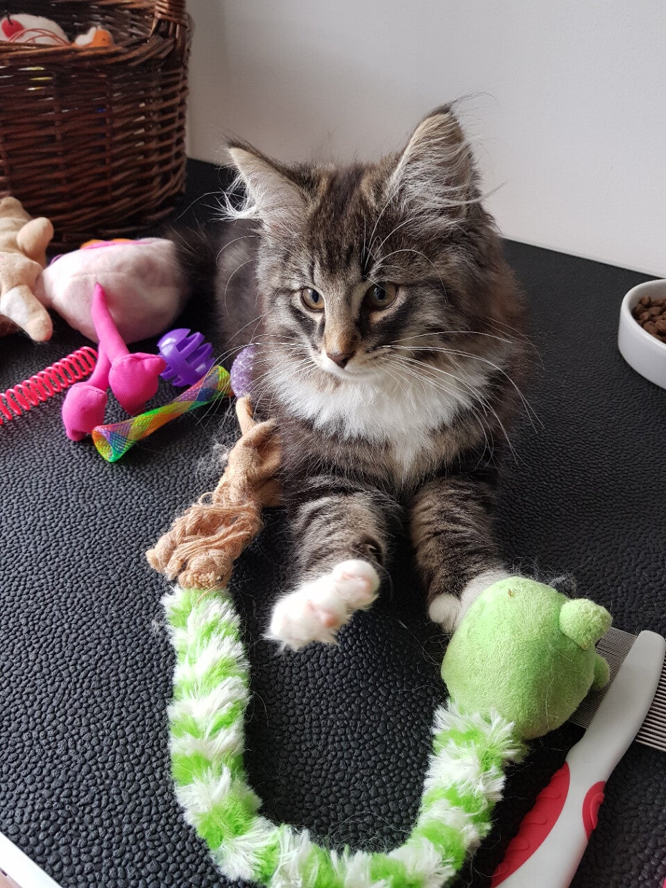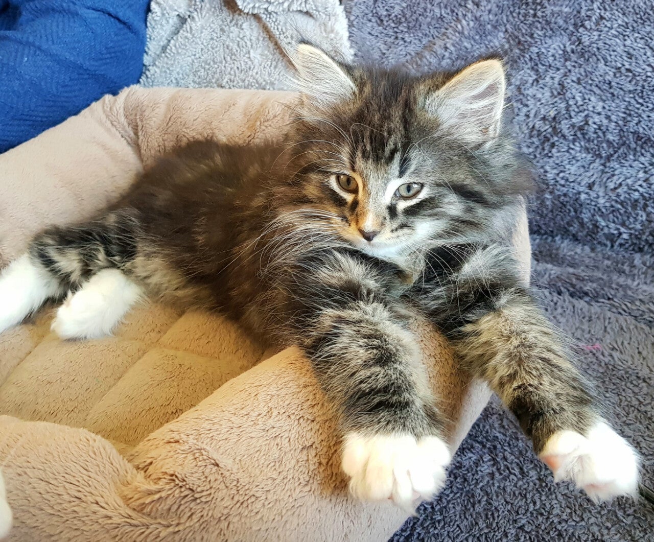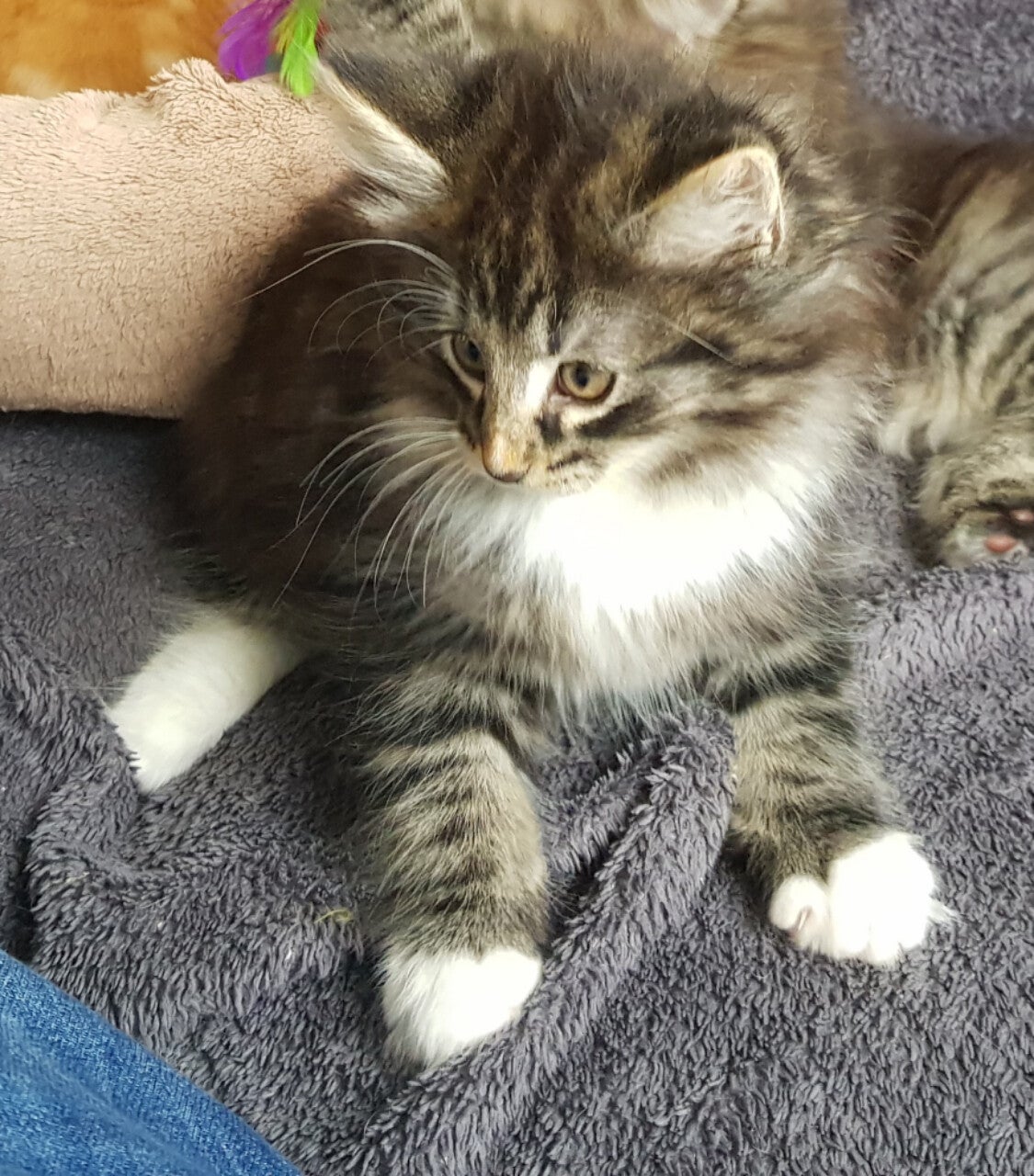Kjell is op 30 januari 2021 geboren in cattery van Yjovi. Hij is een zwart tabby blotched met wit, NFO n 09 22.