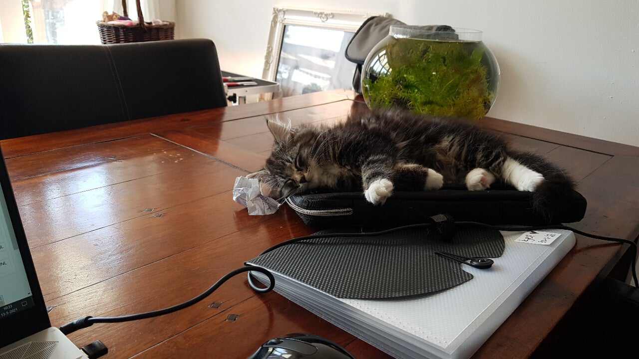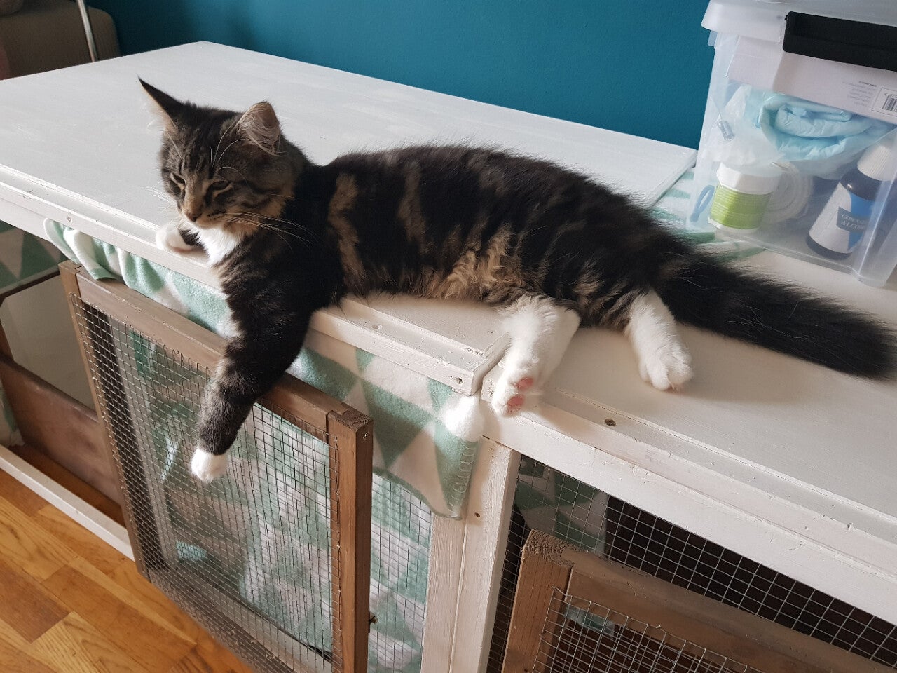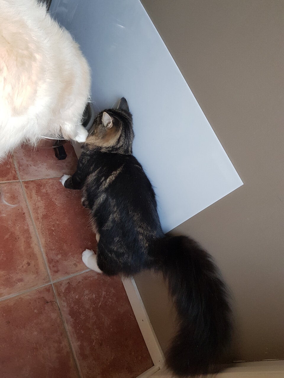 *Hij zijn sprongvermogen heel erg goed en soepel aan het ontwikkelen is geweest waardoor wij nog wel eens verbaasd zijn als hij 'ineens' naast je op het aanrecht staat.