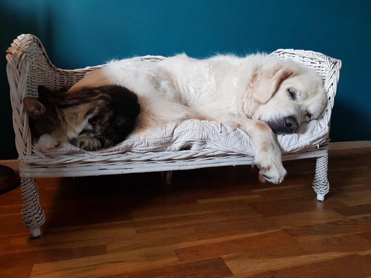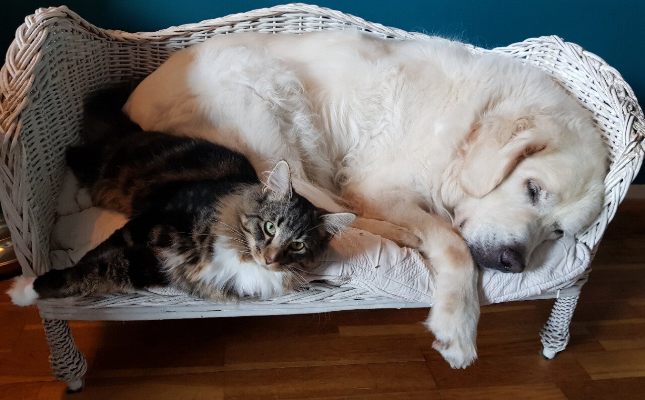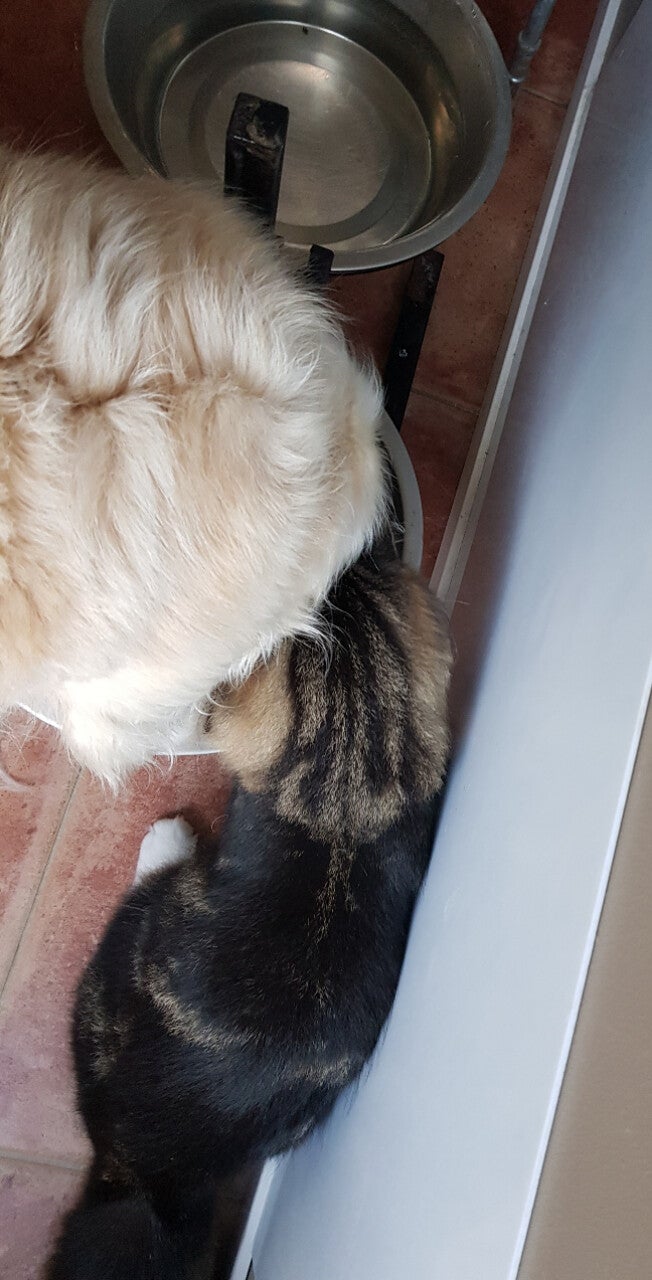 Hoe spannend de blonde doggies de eerste 2 dagen ook waren, Kjell zag bij dag 3 geen angst meer. En nu? Nu denkt hij waarschijnlijk ook dat het gewoon vreemde katten zijn. Zeker Jack waar je mee in 1 mand kunt liggen! Jack is favoriet!...2021