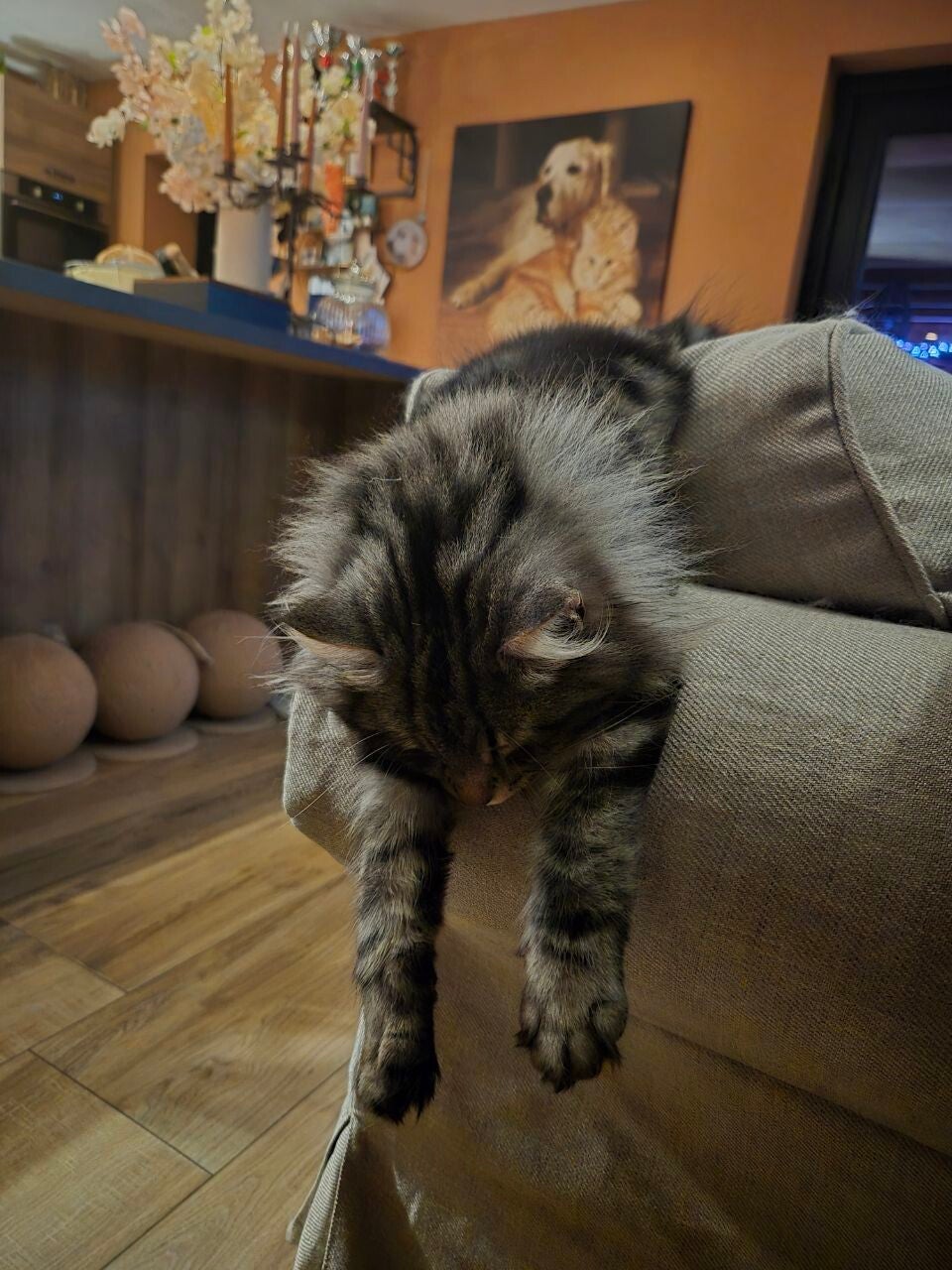 2026, hoe kun je zo zen slapen! Judy heeft het tot kunst verheven. Op de tafel mooi contrast, de grootste en de kleinste hier.