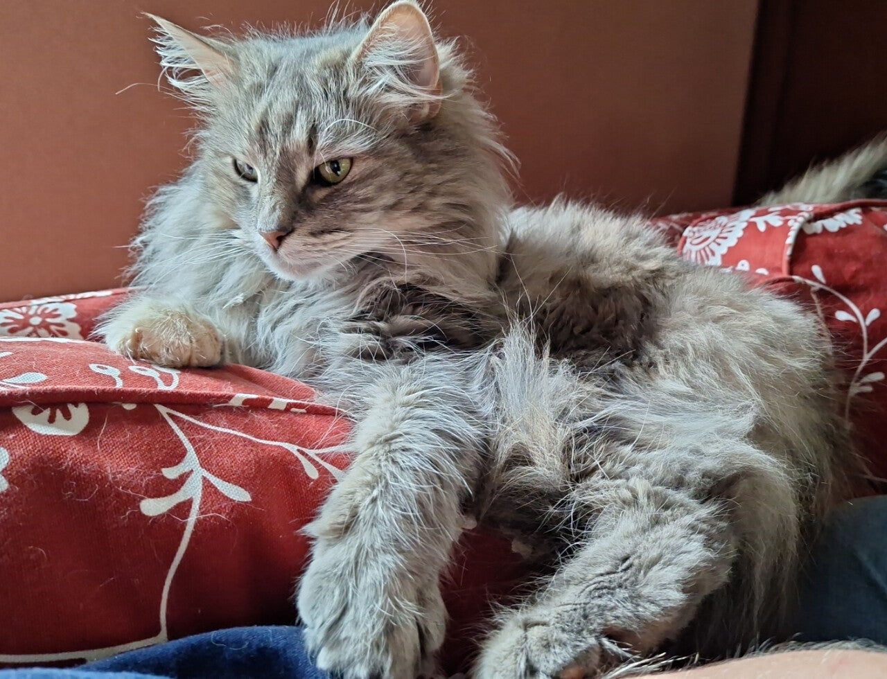 Onze mooie, lieve blauwe tortie Noorse dame. Wat is ze een heerlijk ondernemend meisje. Ze heeft veel lef en met haar energie zorgt ze voor vermakelijke momenten. Lindis is een lieve knuffel, en heel aanhankelijk.