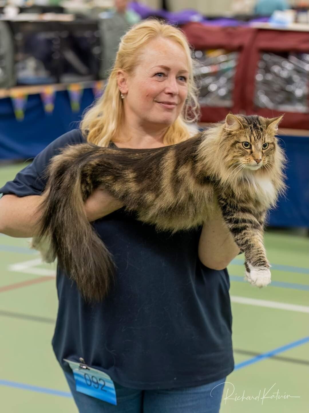 *Showresultaat Ivy bij Felis Belgica in Tienen op 18-08-2019: haar buitenlandse CACIB certificaat. In de ronde voor de BIV werd haar mooie Noorse kenmerken nadrukkelijk nog benoemd, de triangel, haar oren. Ze werd 2e na een prachtige Noorse kater. Nu ze haar buitenlandse en tevens 3e punt heeft behaald mag zij zich voortaan International Champion (IC) noemen.