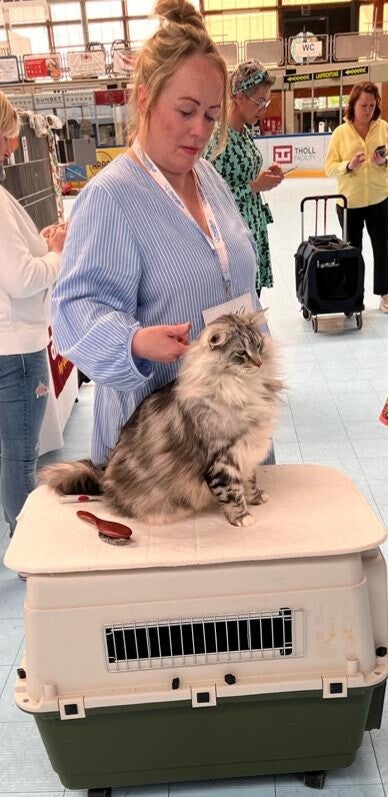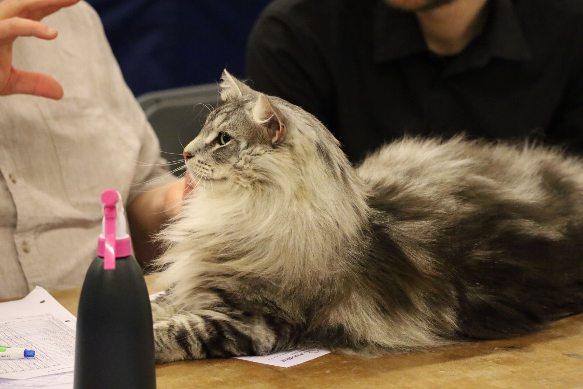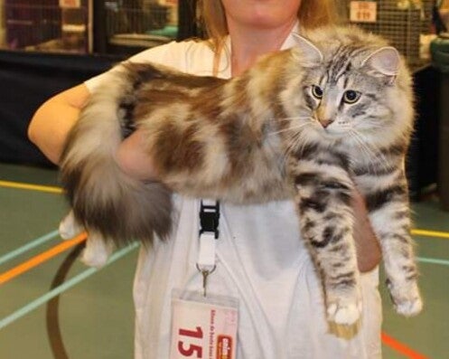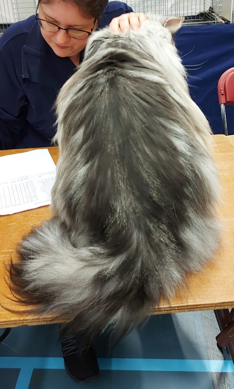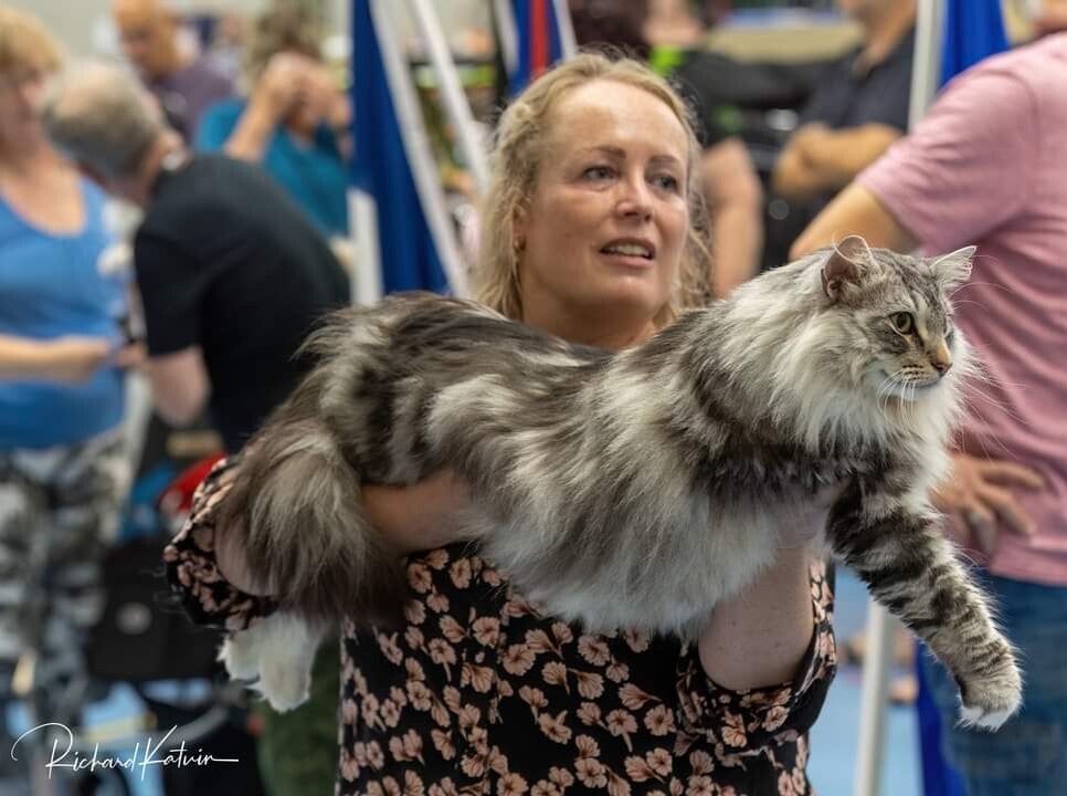 31-03-2019 Heeft Leifr zijn eerste kennismaking met show en een grotere groep mensen bij elkaar gehad. Hij was volledig in zijn element, vond het fantastisch! Hij heeft heerlijk op schoot gezeten en liet zich makkelijk showen. Hij kreeg dan ook een super keurrapport: Excl. 2 (in de categorie 6-10 mnd.) + dat hij de winnaar is geworden van de mooiste zilver zwart tabby's ronde.