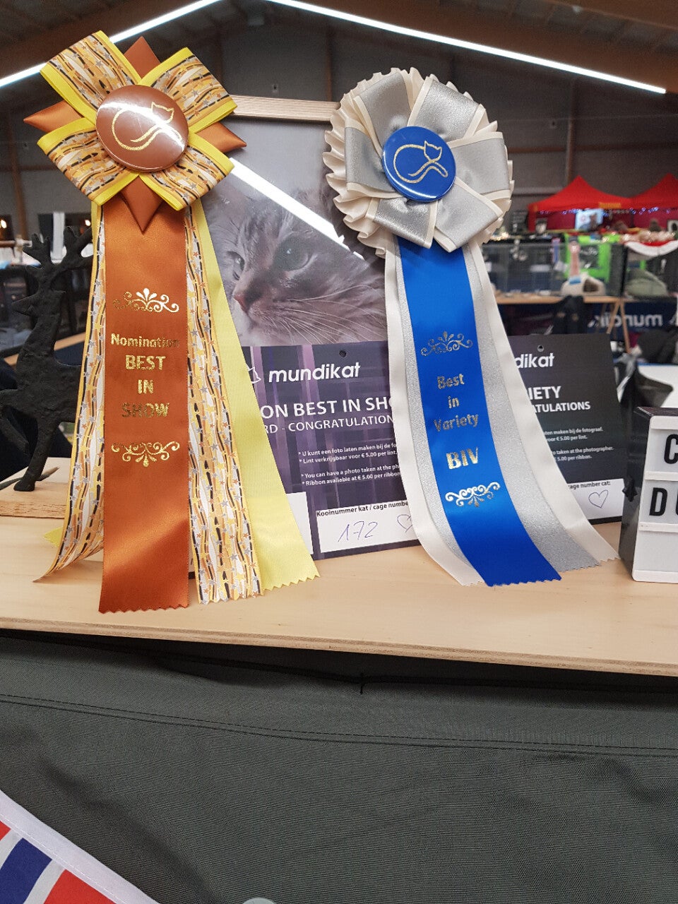 *Showresultaat Lily bij Mundikat te Gorredijk op 8-10-2022: haar 2e CAP certificaat. Plus de BIV won ze van haar 2 broers! En ze kreeg een NOM BIS! **nom bis = nominatie best in show. **biv = best in varieteit