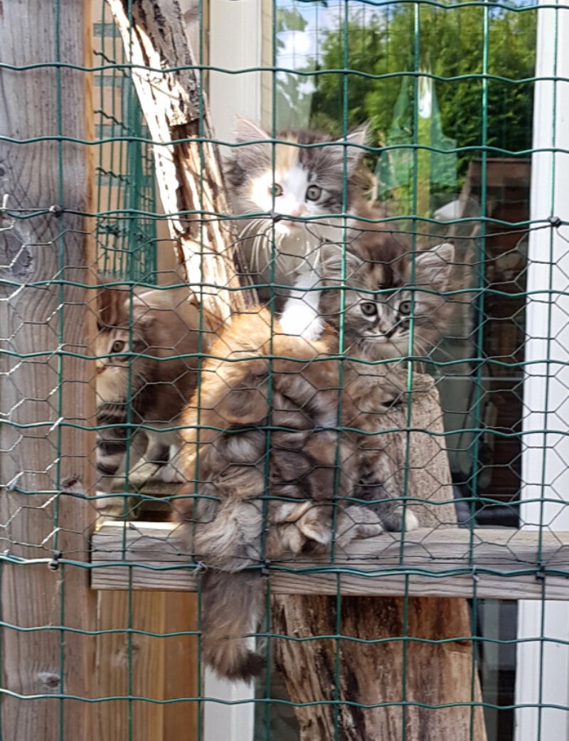 23-7-2021: kittenren eruit, sturdi erin! Meer ruimte omdat Cuppycake daar vooral aan toe was. Mooie oplossing zo want toch nog afgesloten genoeg naar de wens van Floortje.