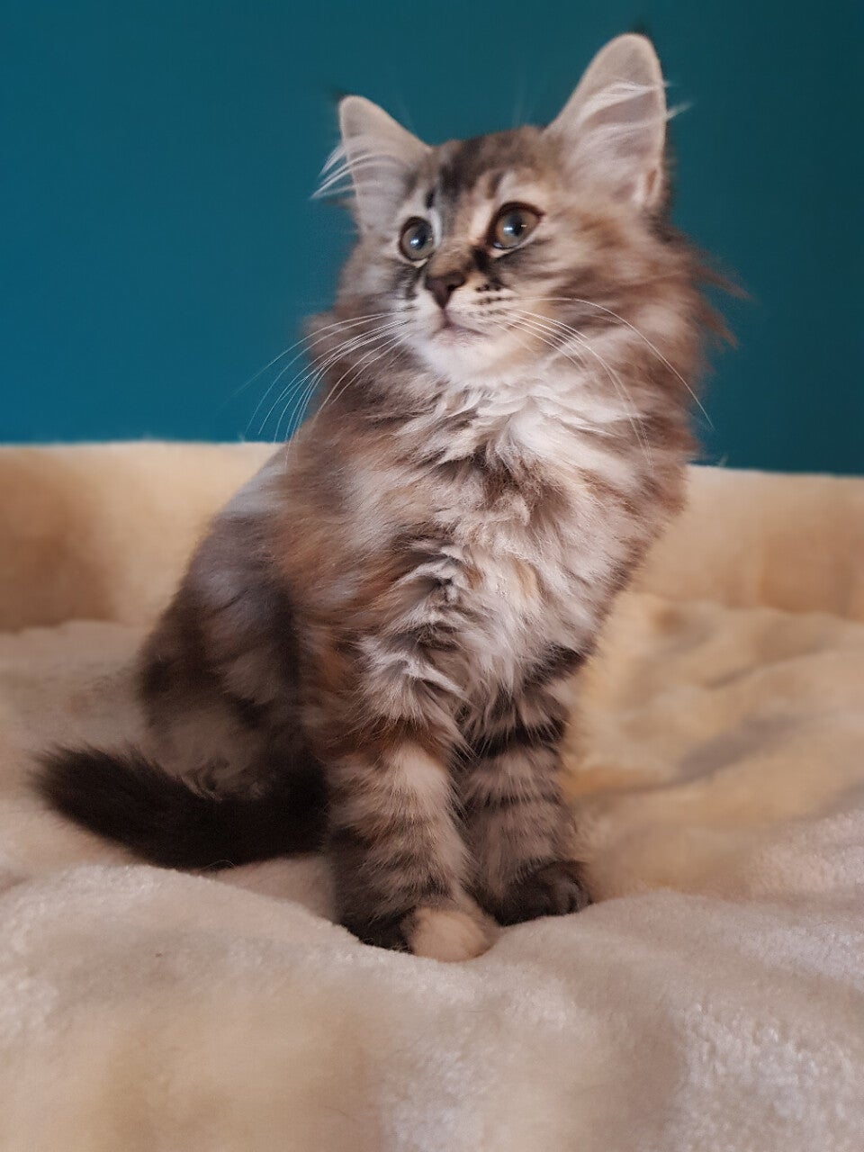 24-8-2021, 8 weken tortie heerlijkheid. Sugarplum heeft een prachtig gewicht van 1070 kg. Ze is rustiger dan haar zusje en heeft een super mooie indringende oogopslag.