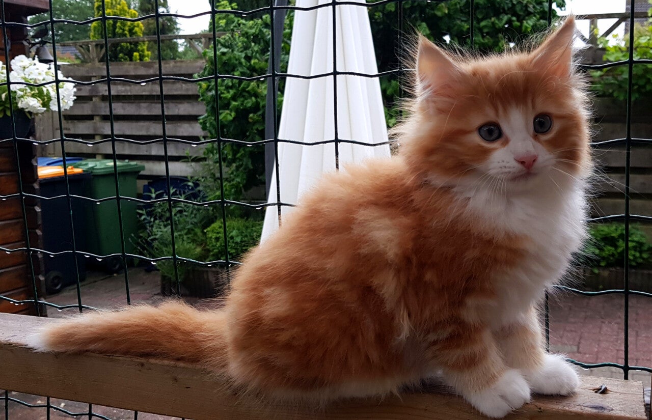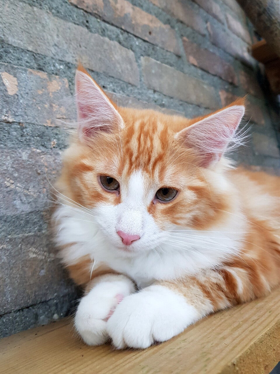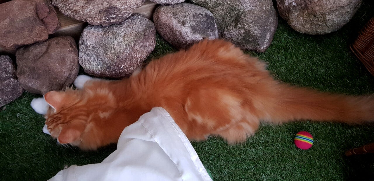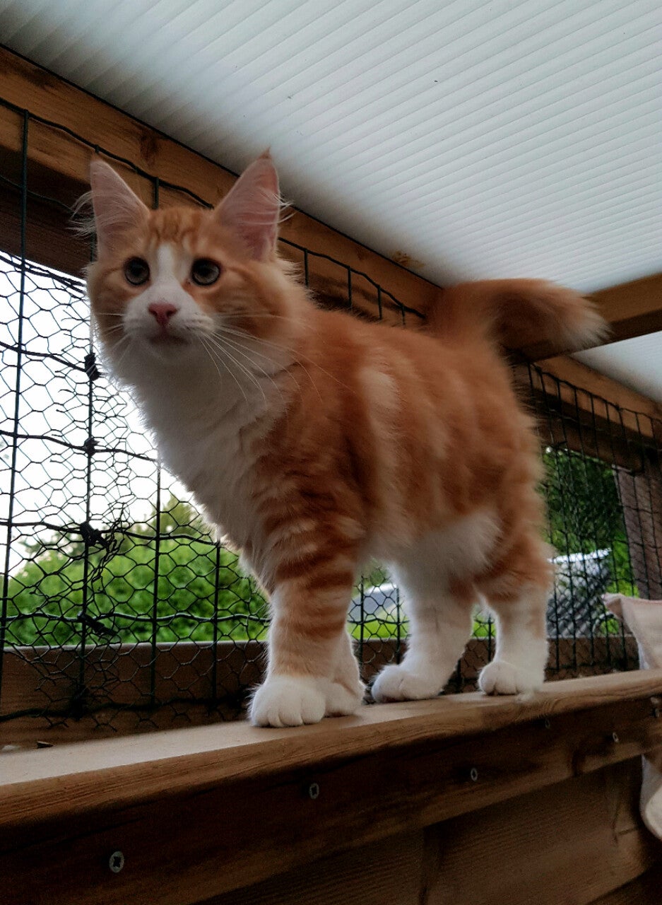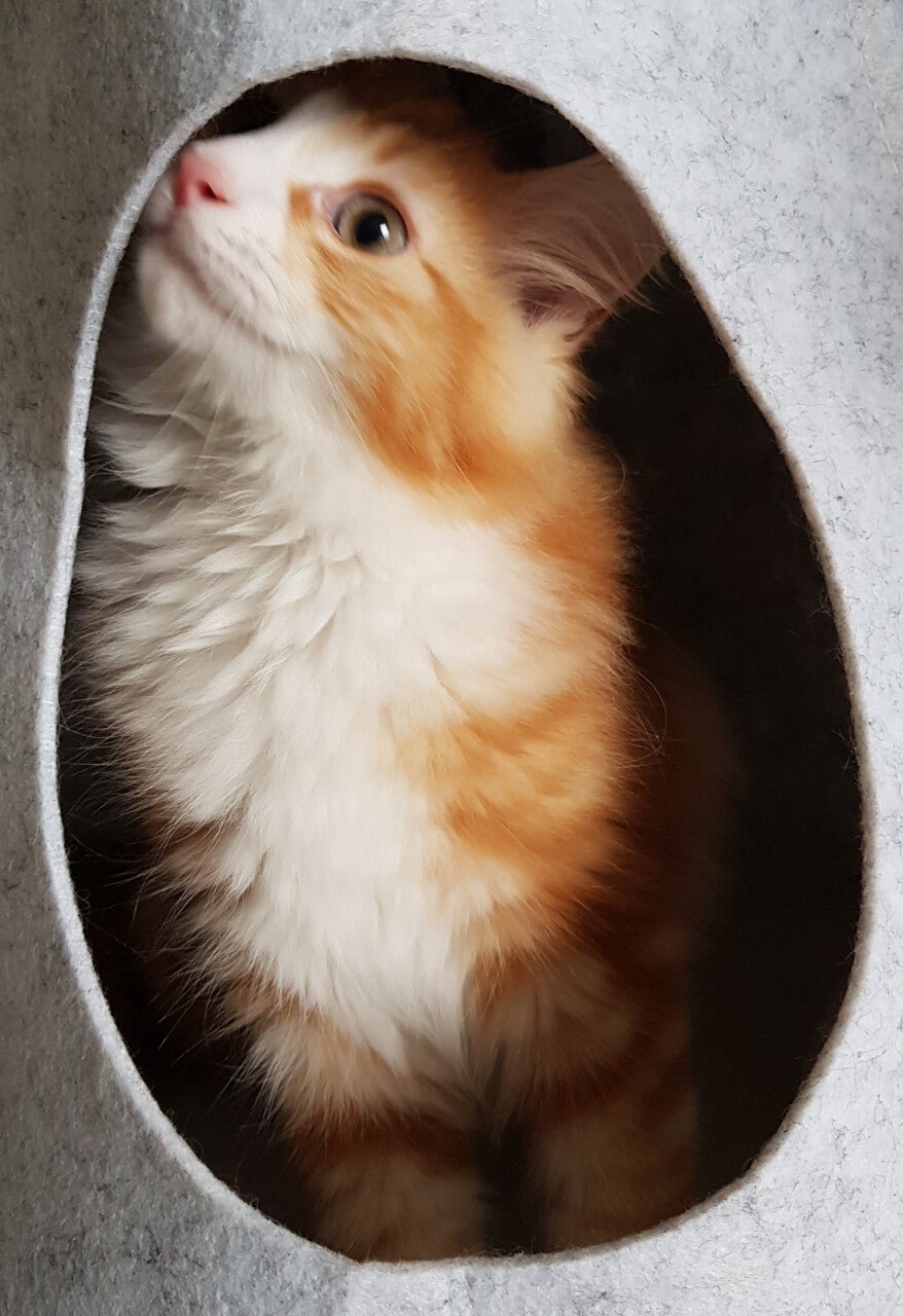 11-7-2020: 14 weken jong zijn de 7 ling en Julien groeit en speelt zoals we niet anders zouden verwachten. Een heerlijk lief boefje die op dat moment 2,130 kg woog. Julien en Cosma blijven wat langer bij ons omdat ze naar België verhuizen en dat is voor ons geen straf en zeker voor Sissel ook erg leuk. Zo gaan zij met z'n drietjes de beginselen van kattenkwaad uithalen de 3 ling, Caspian, Cedrik en Caspar, wel bijbrengen.... Ook al realiseren we ons dat ook Julian ooit verhuisd, we gaan nog lekker van de verlengde tijd genieten. Of niet dan, lief rood knuffel beertje!