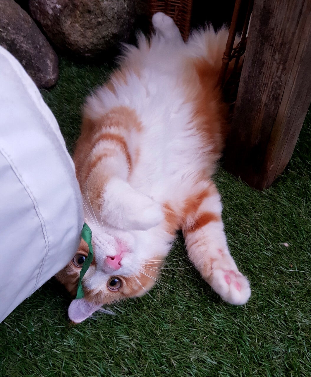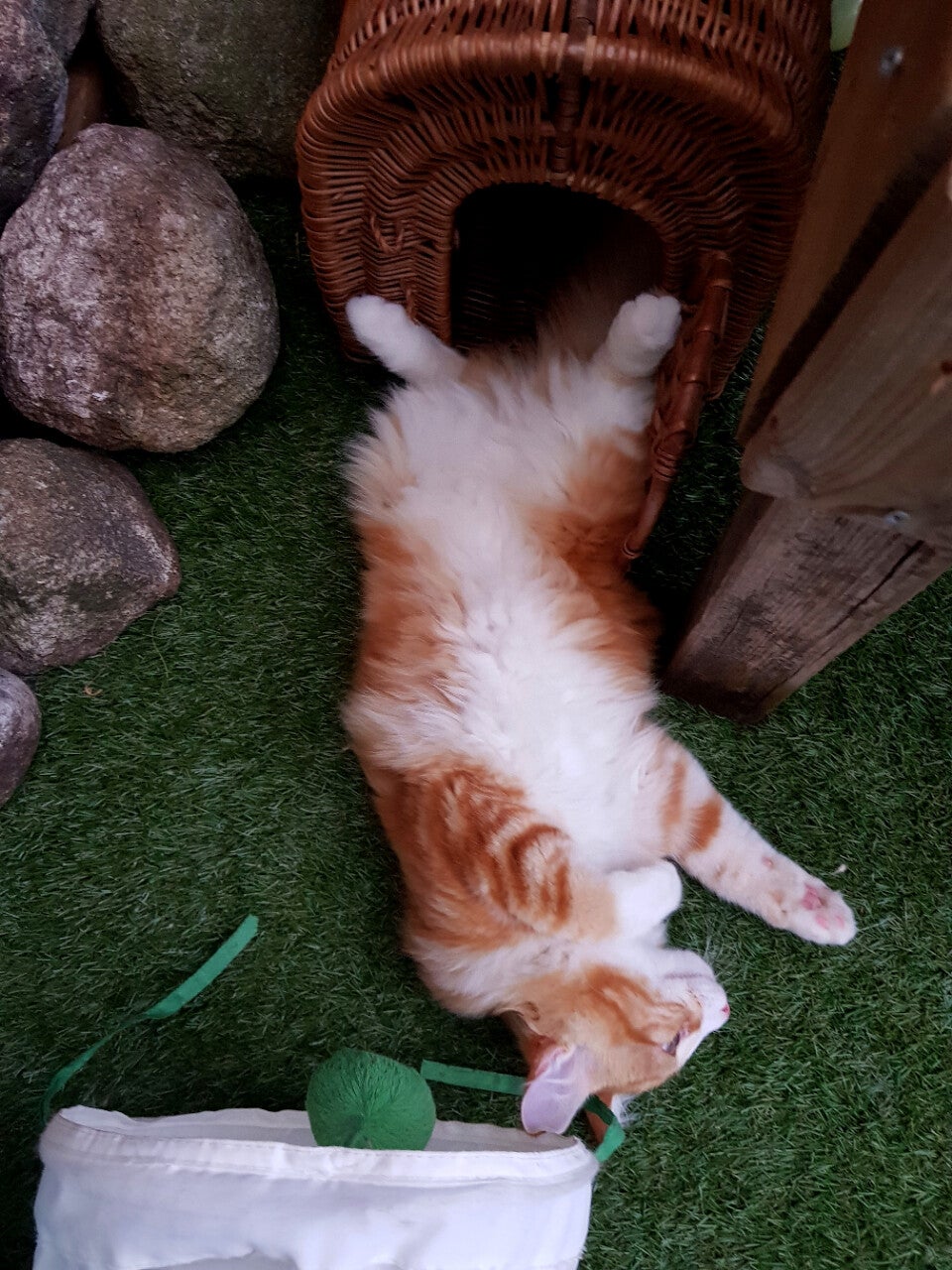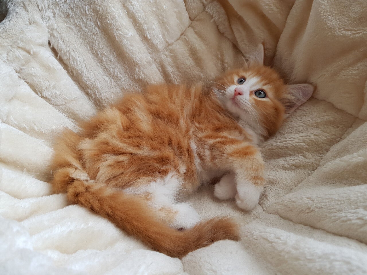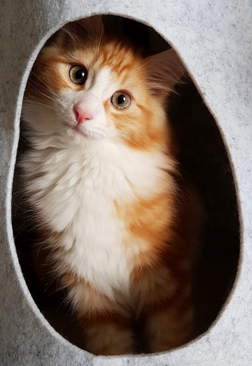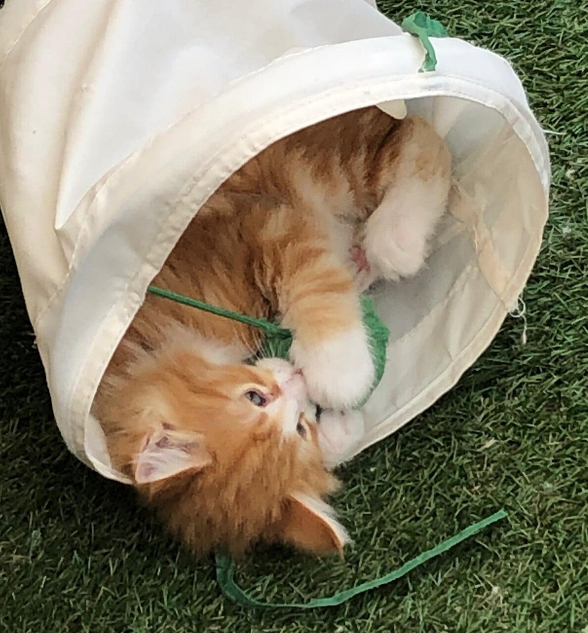 11-7-2020: 14 weken jong zijn de 7 ling en Julien groeit en speelt zoals we niet anders zouden verwachten. Een heerlijk lief boefje die op dat moment 2,130 kg woog. Julien en Cosma blijven wat langer bij ons omdat ze naar België verhuizen en dat is voor ons geen straf en zeker voor Sissel ook erg leuk. Zo gaan zij met z'n drietjes de beginselen van kattenkwaad uithalen de 3 ling, Caspian, Cedrik en Caspar, wel bijbrengen.... Ook al realiseren we ons dat ook Julian ooit verhuisd, we gaan nog lekker van de verlengde tijd genieten. Of niet dan, lief rood knuffel beertje!