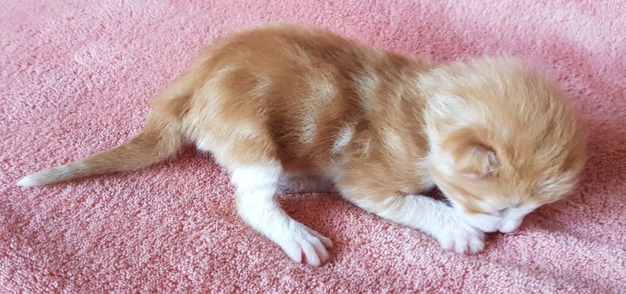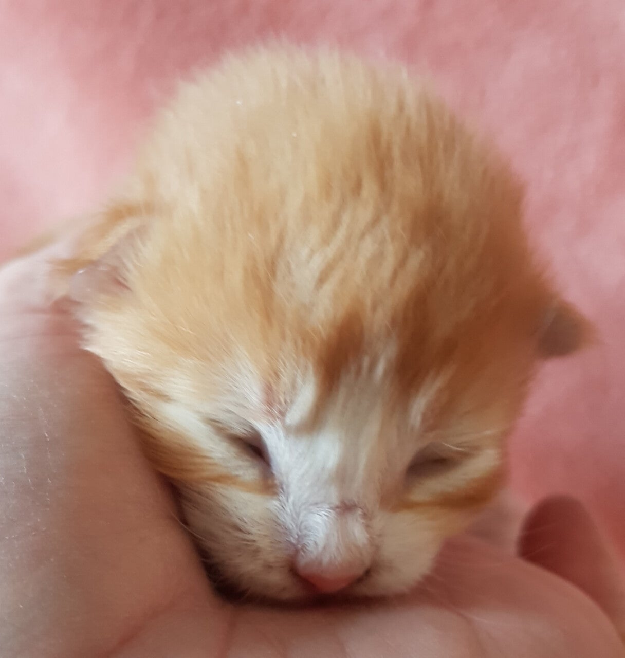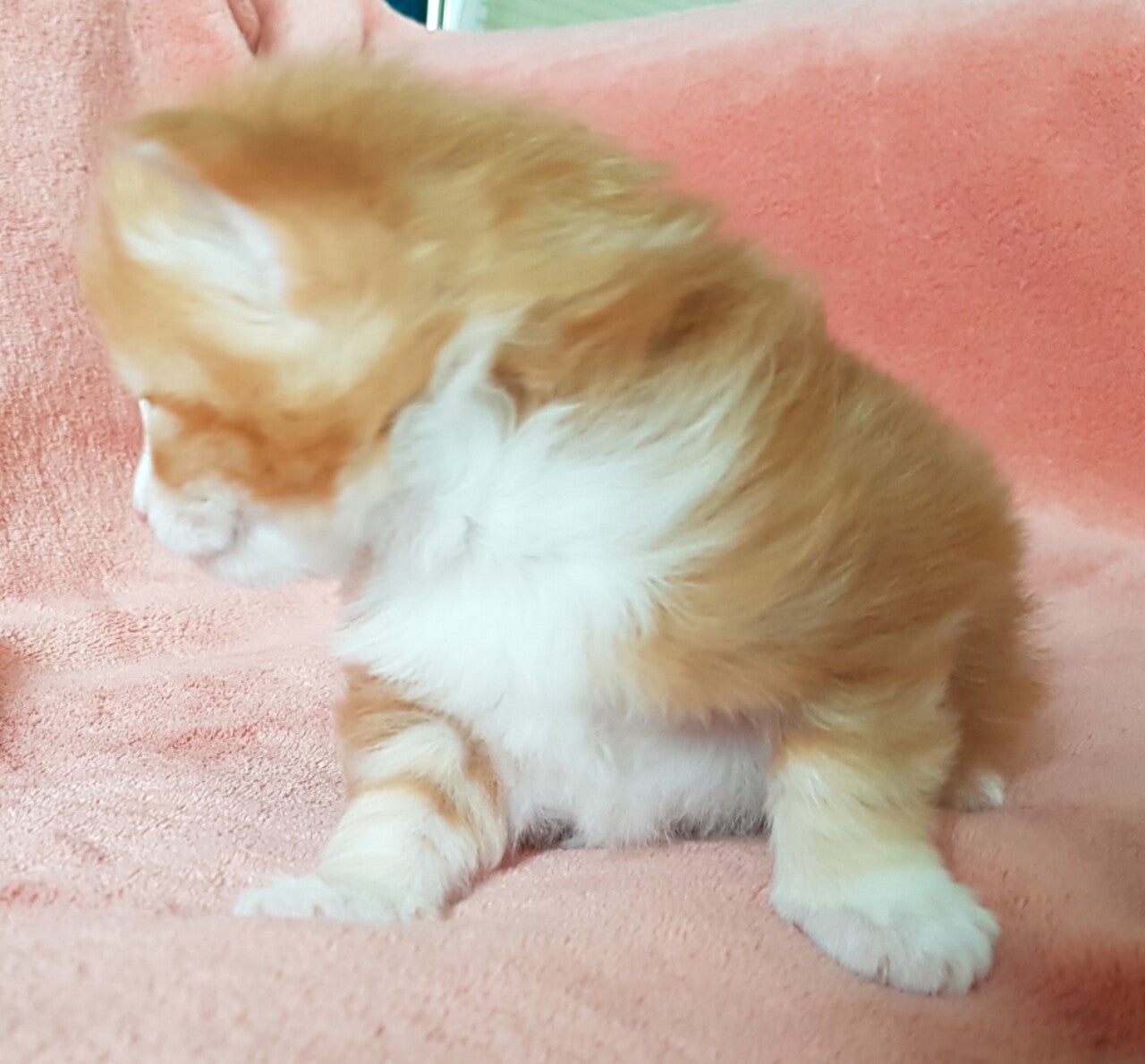 9-5-2020: Ons mooie beertje Julien. Lief en aanhankelijk, hij komt ook direct bij je als we in de kitten speelplaats erbij komen zitten. Nu zijn ze alle 7 heel mens gericht maar Julien heeft ook nog zo'n schattig rood beertje uitstraling. Hij laat het eten zich ook goed smaken en weegt op dit moment 656 gram.