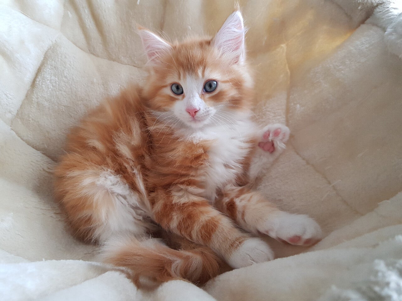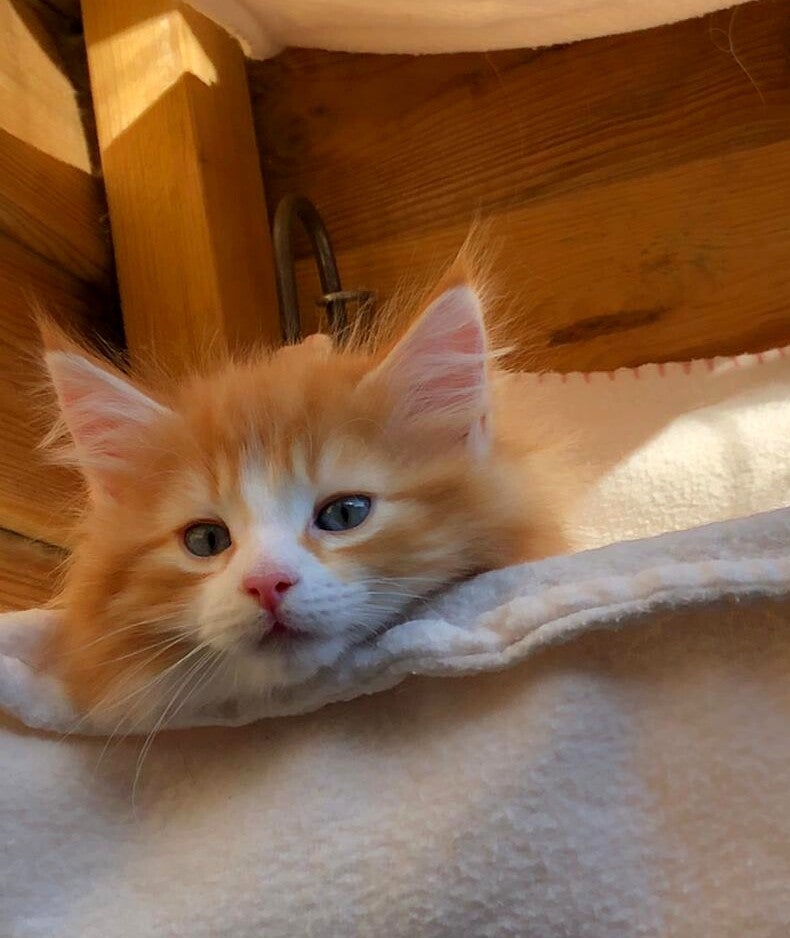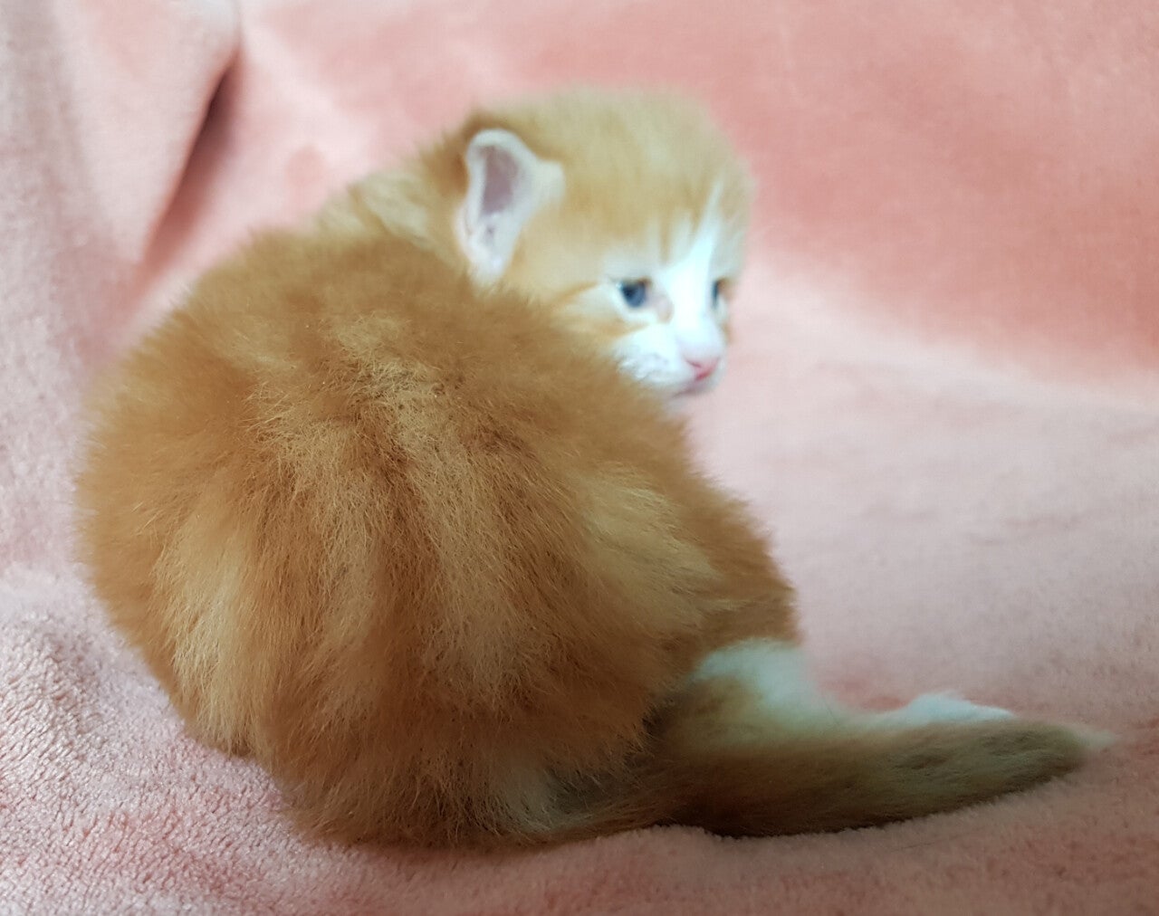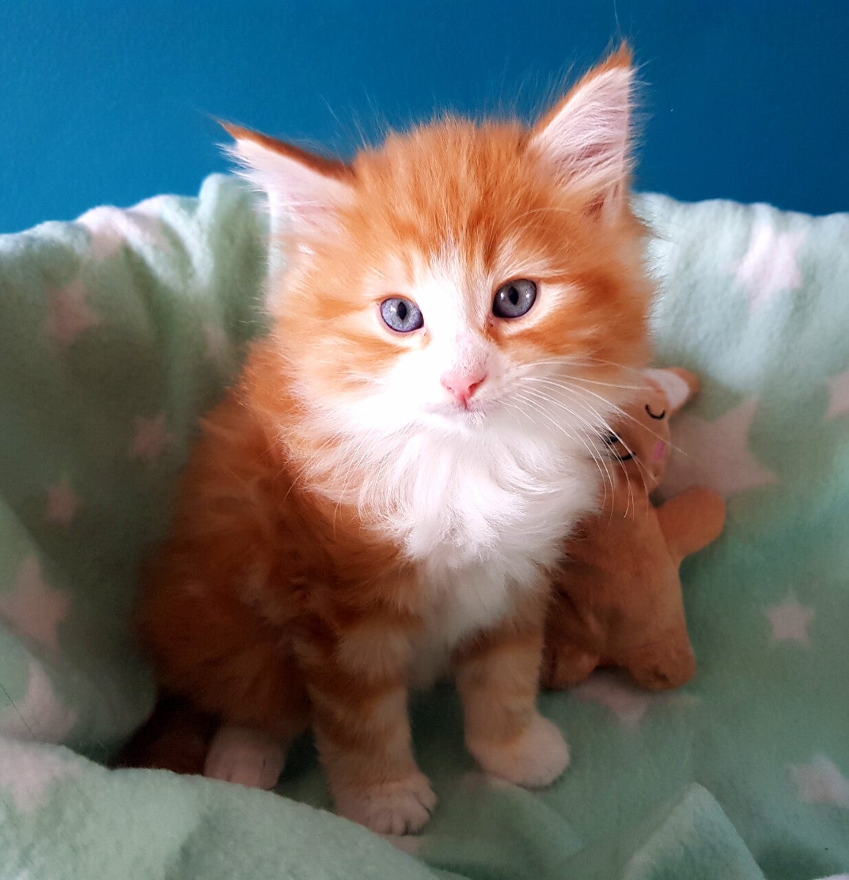 9-5-2020: Ons mooie beertje Julien. Lief en aanhankelijk, hij komt ook direct bij je als we in de kitten speelplaats erbij komen zitten. Nu zijn ze alle 7 heel mens gericht maar Julien heeft ook nog zo'n schattig rood beertje uitstraling. Hij laat het eten zich ook goed smaken en weegt op dit moment 656 gram.