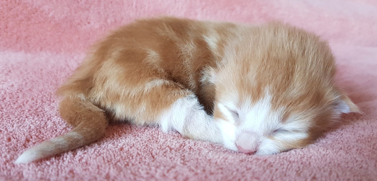 25-4-2020: 3 weekjes jong, Julien is nog steeds de grootste van de 3 rode broers. Hij weegt een mooie 440 gram. Op dit moment zijn de 3 rode broers rustiger dan de donkere broers maar dat zal vast nog wel veranderen. Julien kan nu op zo'n heerlijk kalme manier naar je kijken, kruipt ook niet heel snel. Hij neemt zijn tijd en vindt het heerlijk om op zijn buikje gekriebeld te worden. Hij heeft een prachtige tekening in zijn vacht, mooie strepen over zijn achterwerk. Ook hij heeft net als Perry zilver in zijn staart. Ik ben erg benieuwd hoe mooi dat er later uit zal zien.