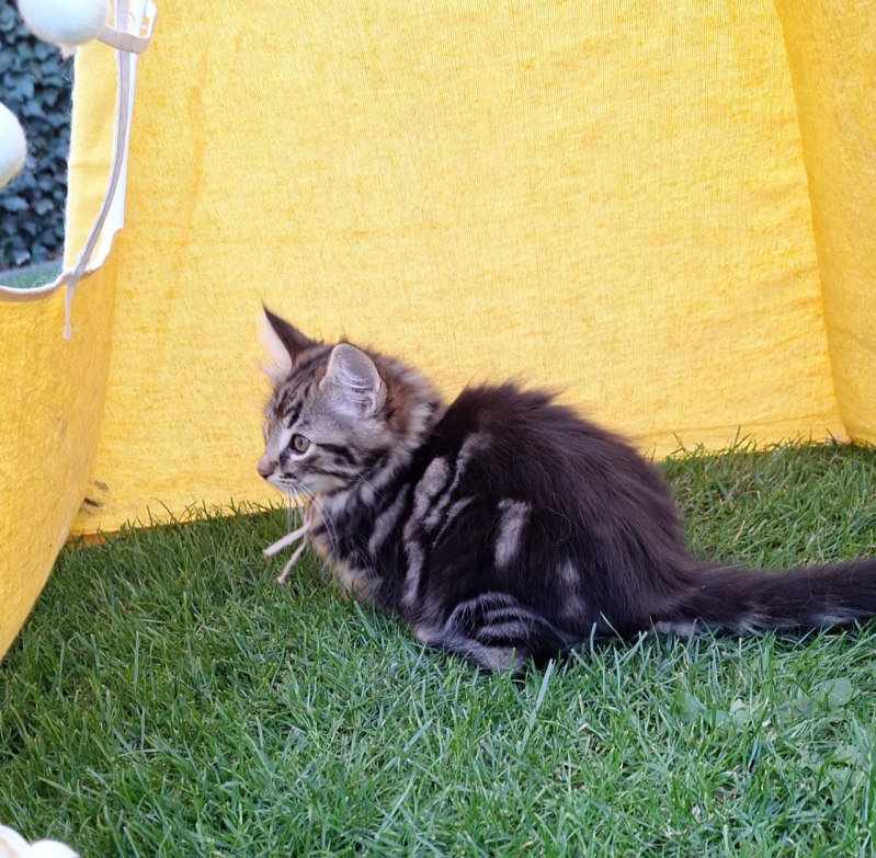 Een prachtige zwart tabby gemarmerd kind, een NFO n 22.