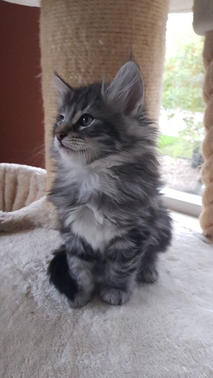 Nummer 4, een 2e zoon en weer zo'n knapperd! Jonathan was geboren en wel om 5:01 met een prachtig geboorte gewicht van 117 gram waar hij 's avonds al 132 gram van had weten te maken. Jonathan is een zwart tabby zilver gemarmerde Noorse bosheer. Geen wit, wat zijn broertje wel heeft. Toch nog even iets verschil in deze zee van zwart tabby's.