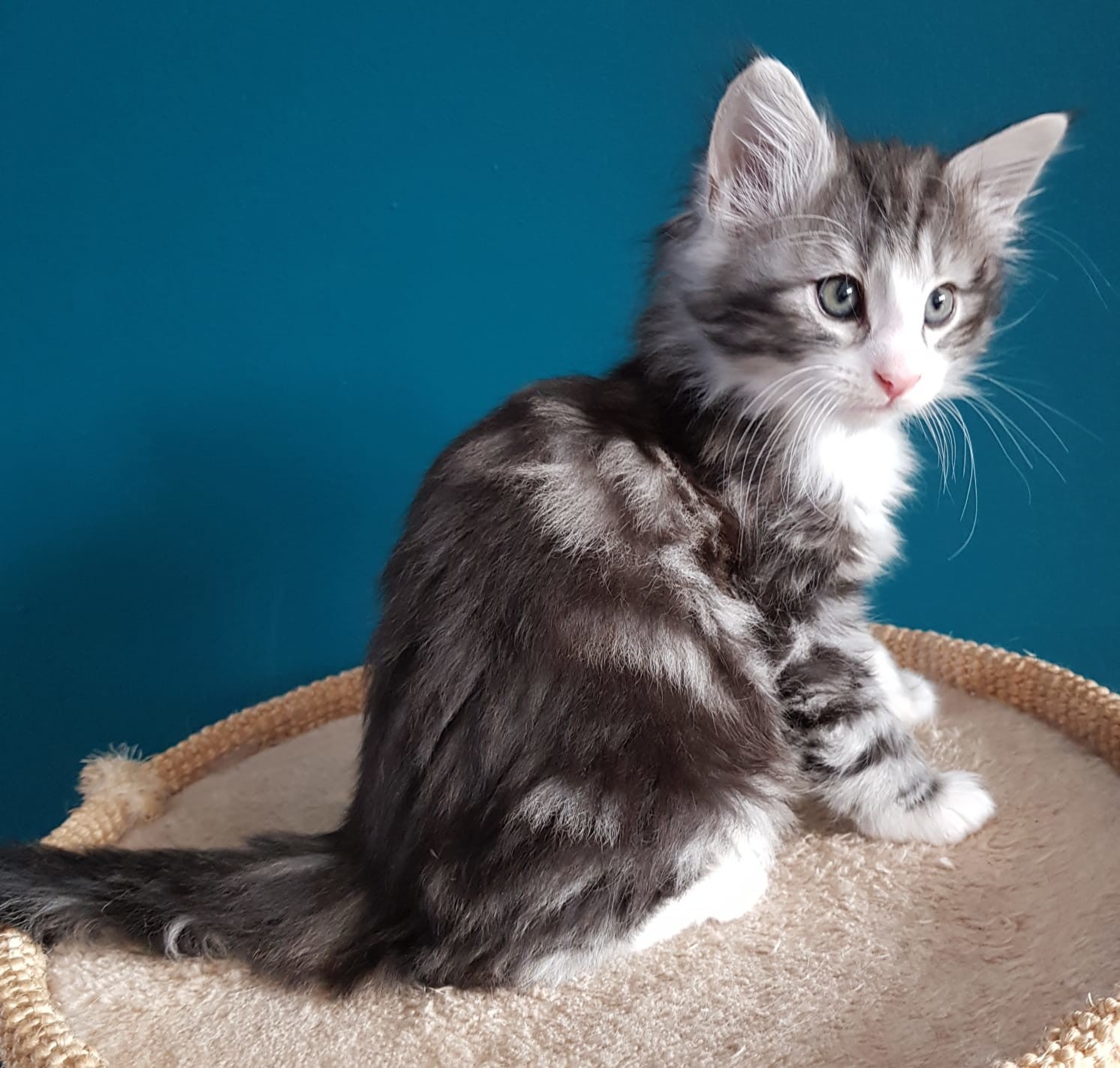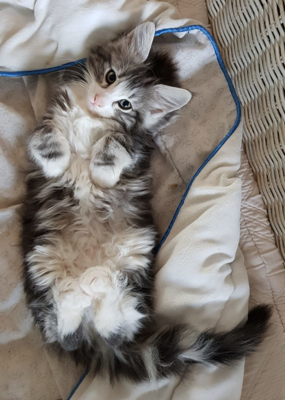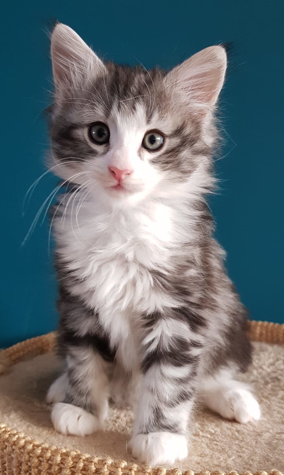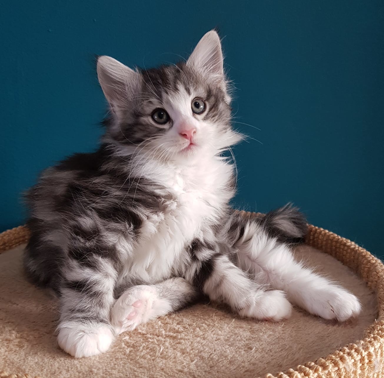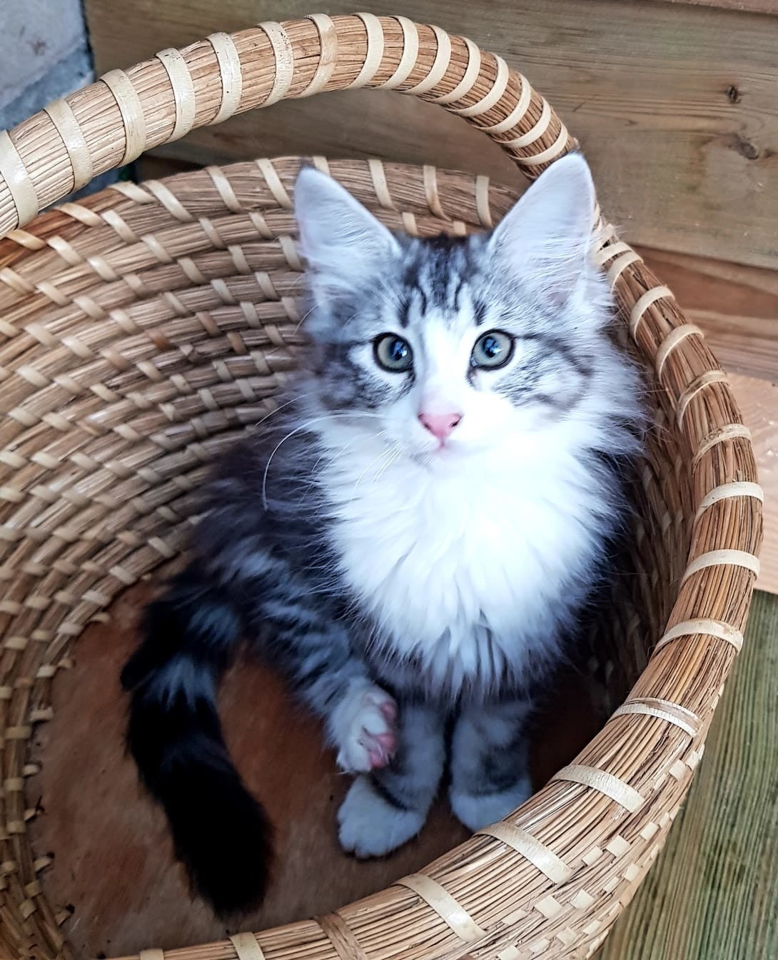 27-10-'18: Het heerlijke duveltje in het doosje, ons clowntje kjære Lillemor. Wat een heerlijke energiek Noors meisje is ze toch. Ze rent, vliegt nog net niet en laat zich niet op de kop zitten door haar broers. Zelfs half broer vakre Gideon is ze niet bang voor en hij pubert al een beetje. Maar zoals een echte Noorse bosmeid betaamt klimt ze hoog en rent heel hard. Met haar 1,660 kg gaat ze lekker op een leeftijd van 13 weken.