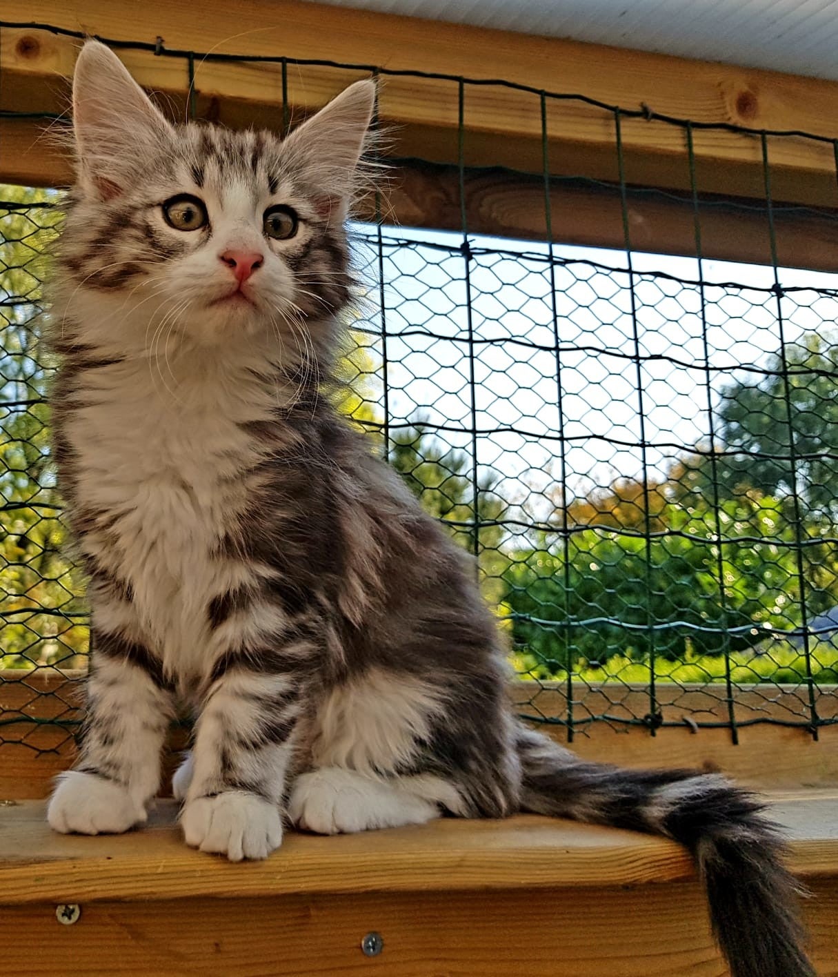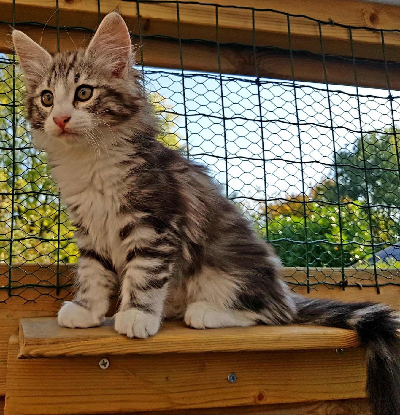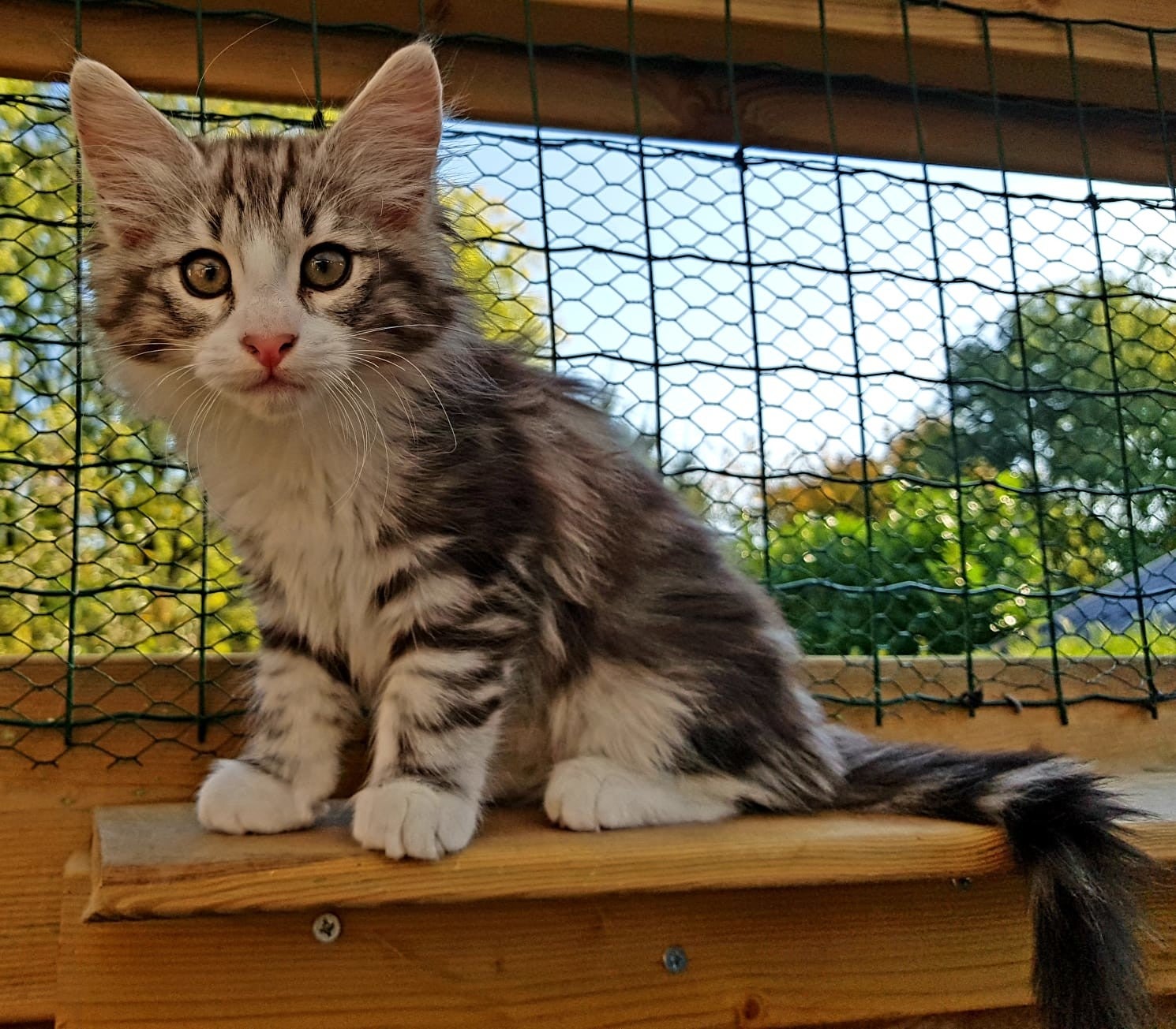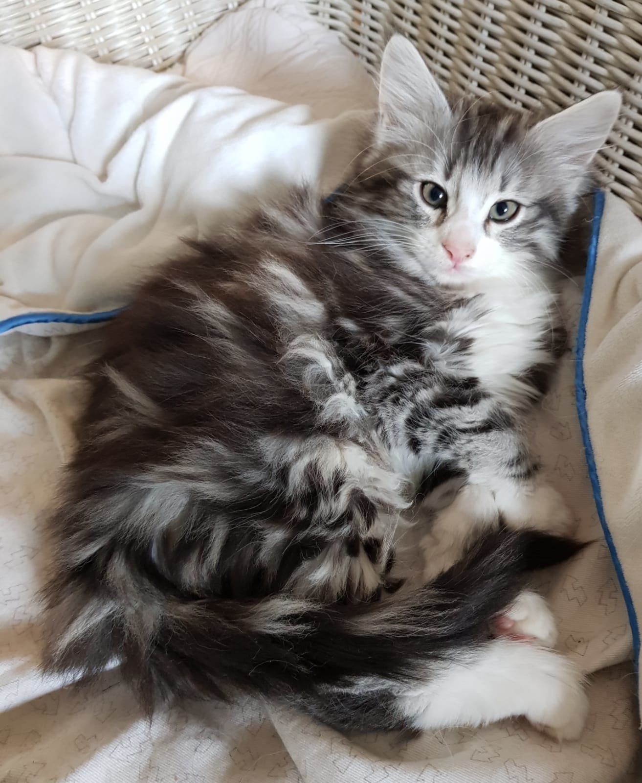27-10-'18: Het heerlijke duveltje in het doosje, ons clowntje kjære Lillemor. Wat een heerlijke energiek Noors meisje is ze toch. Ze rent, vliegt nog net niet en laat zich niet op de kop zitten door haar broers. Zelfs half broer vakre Gideon is ze niet bang voor en hij pubert al een beetje. Maar zoals een echte Noorse bosmeid betaamt klimt ze hoog en rent heel hard. Met haar 1,660 kg gaat ze lekker op een leeftijd van 13 weken.