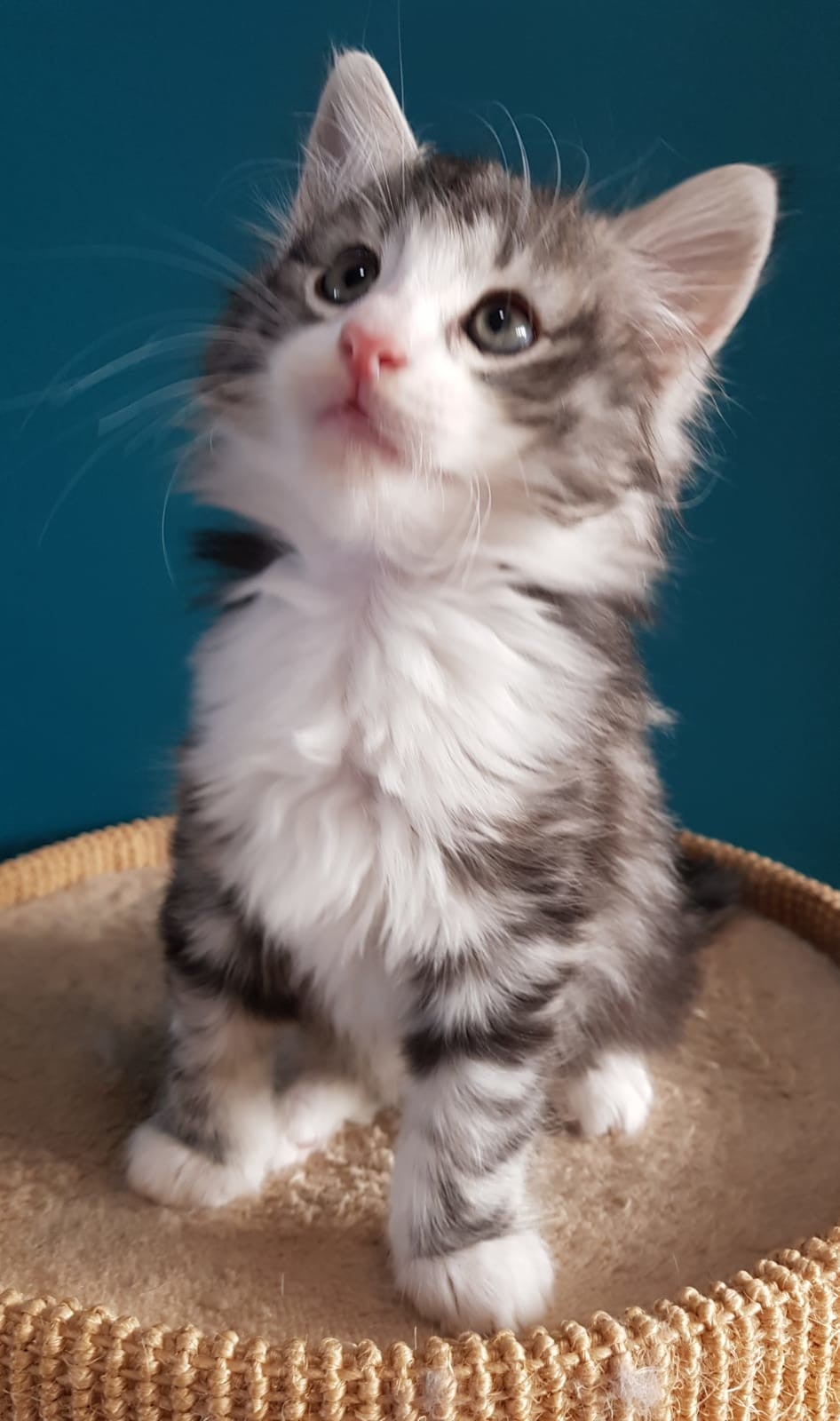 16-09-'18: het olijke ding kjære Lillemor, zo onbevangen en lief. Het leven is een feestje voor haar. Ze heeft het druk, rent en klimt. Ze weegt 959 gram, het eten is zo lekker dat ondanks al het gespeel ze een super gewicht heeft. Het 4-tal drinkt ook nog graag bij mama Ivy maar eten allemaal verder zelfstandig van het vlees en de brokjes. Kijk je naar kjære Lillemor wordt je acuut vrolijk, al 7 weken lang.