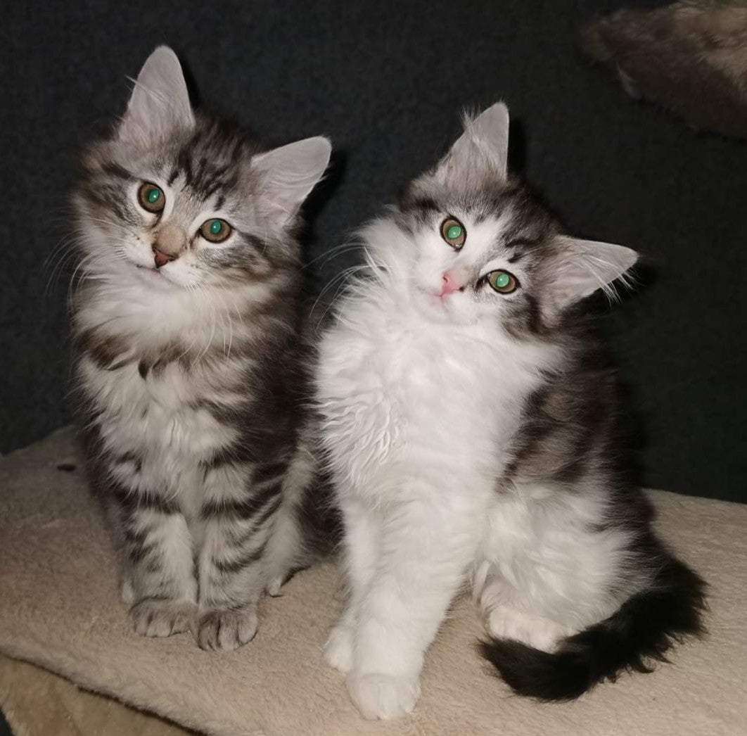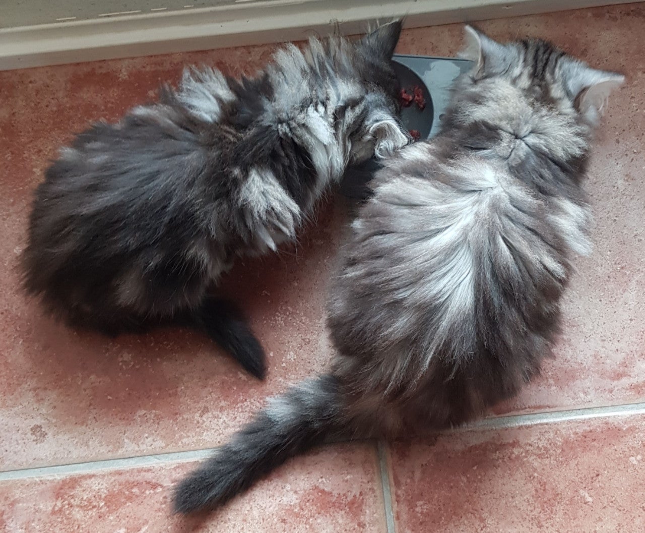 Arabelle wordt met de week mooier, anders mooi dan haar zusje met haar guitige koppie. Bij Arabelle beginnen we steeds meer de diversiteit aan kleuren in haar vacht te zien. De dametjes beginnen ook al echt een mooie lengte in hun vacht te ontwikkelen. Het duurde even voordat Arabelle zelf at maar inmiddels is ook zij een grote meid. Vlees, ruiken aan een eendagskuiken, gekookte kippenvlees, ze laat zich het smaken. 1x per dag krijgen ze nog wat pap gemaakt van Farmfood kittenmelk met wat rijstebloem erin dat gaat er ook nog prima. Ze hebben behoefte aan een slokje bij mama maar ook 3 tot 4 voeder momenten van vlees e.d. aangezien de brokjes nog voorkeur hebben. (kittenbrokjes van Royal Canin en Prins) Arabelle is wel wat grover van bouw en ook wat zwaarder, een keurige kilo plus.
