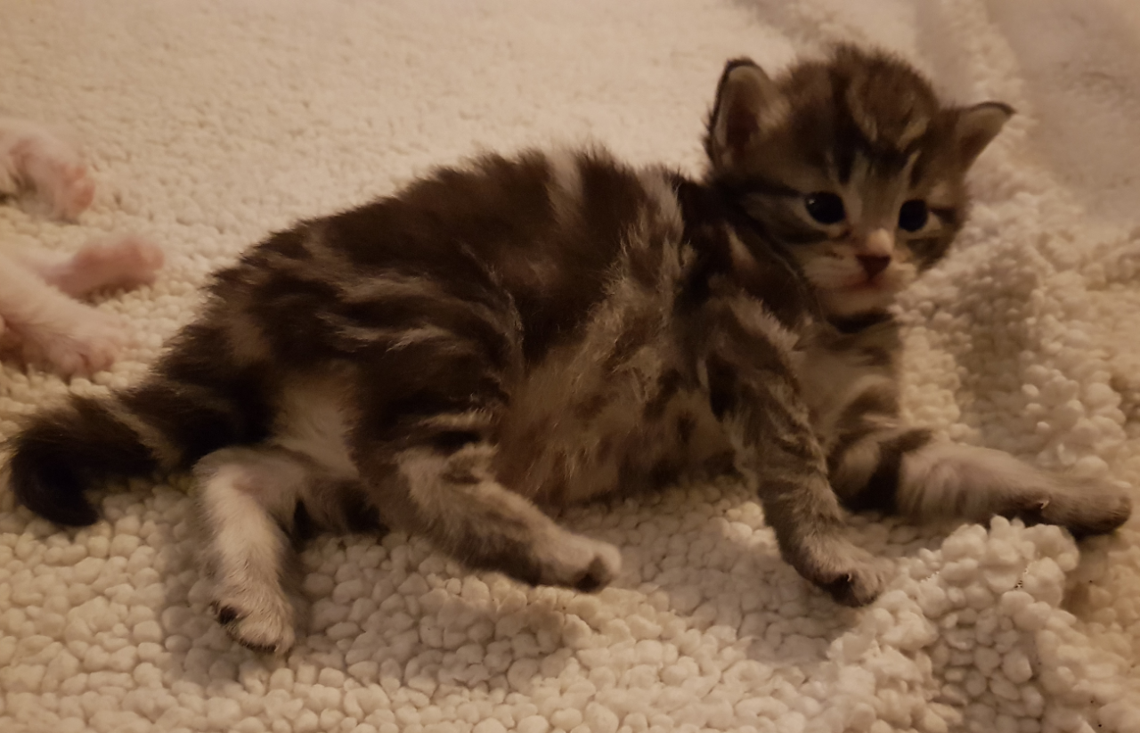 3 weken alweer, wat gaat de tijd snel. Arabelle weegt een keurige 431 gram, haar oogjes zijn mooi open en die kijken heel nieuwsgierig de wereld in. De kittens mogen inmiddels een klein beetje extra ruimte in deren en dat wordt gewaardeerd want ze ontdekken dat het een lieve lust is. De bewegingen worden met de dag meer bewust gemaakt. Arabelle is een lief popje die alles op haar gemak ontdekt.