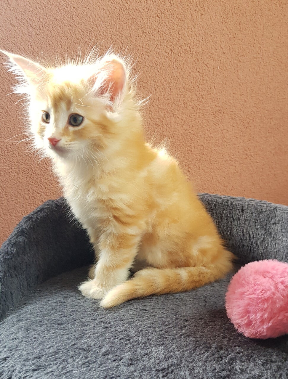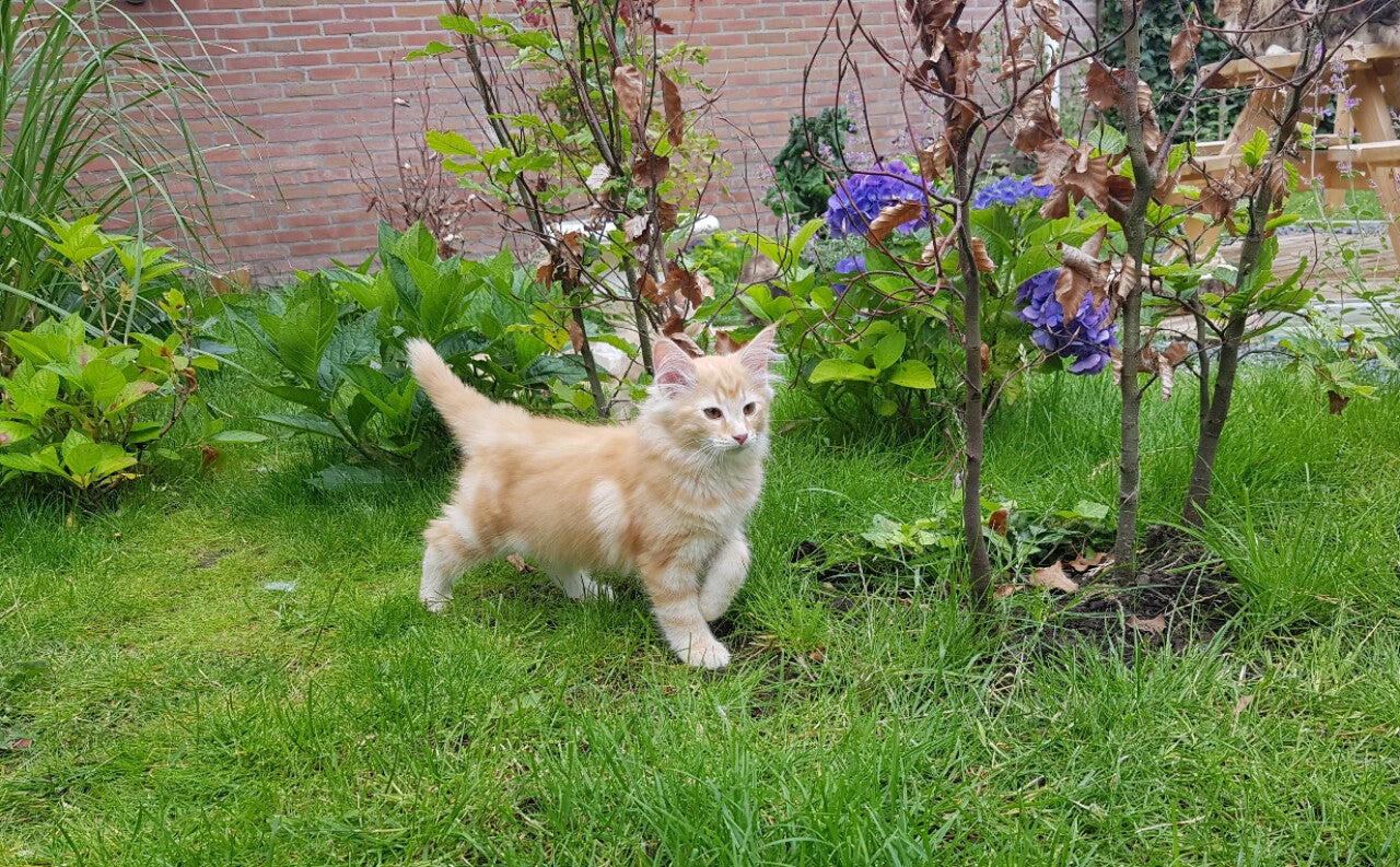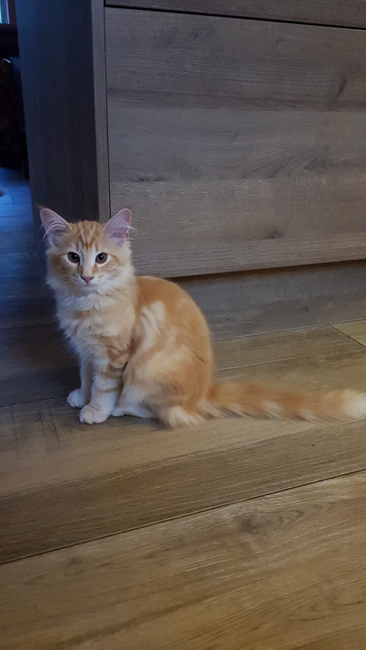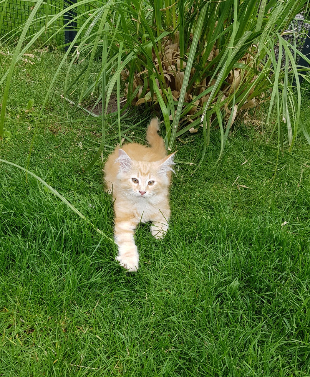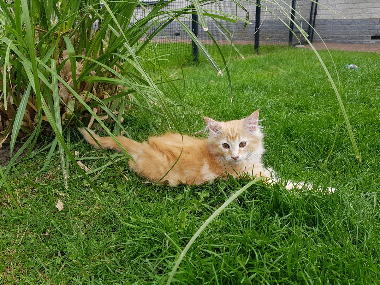 6-6-2022: Siri, het lieve en stoere kleine ding, is ook al weer 7 weken. Ze is de kleinste van het stel na zus Signe. Betekent wel dat ze hard door alle kieren en gaten heen kan racen wat haar grotere broers niet kunnen. Siri is in 1 week 126 gram gegroeid en weegt nu 728 gram. Het aanstaande personeel van zowel Siri als Synne, de gezusters gaan samen verhuizen, heeft ze ook al bij op schoot gezeten. Nou ja gezeten...geslapen en gesnurkt! Ze weet ze nu al om haar pootje te winden.
