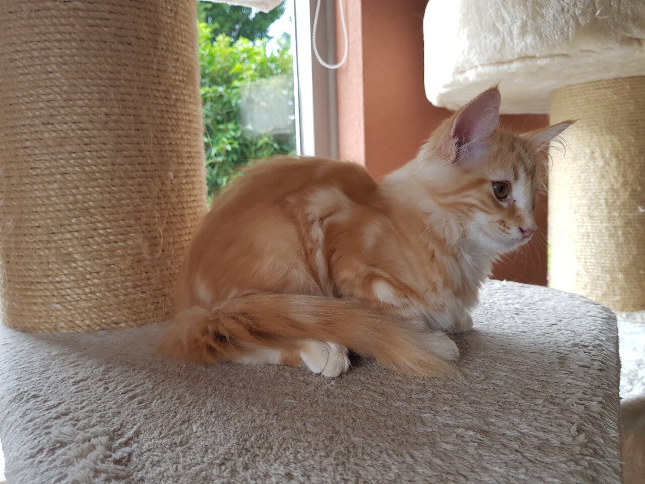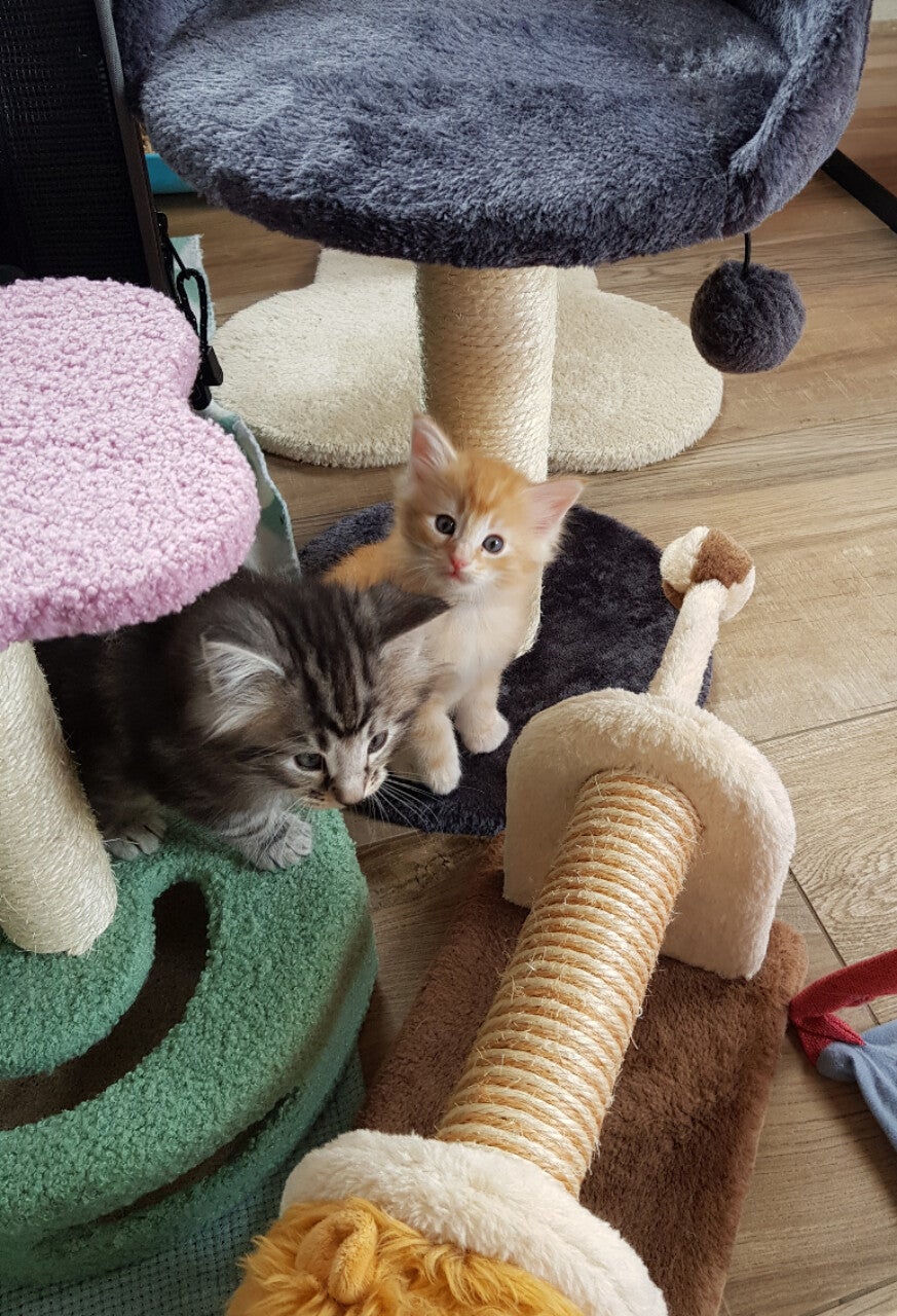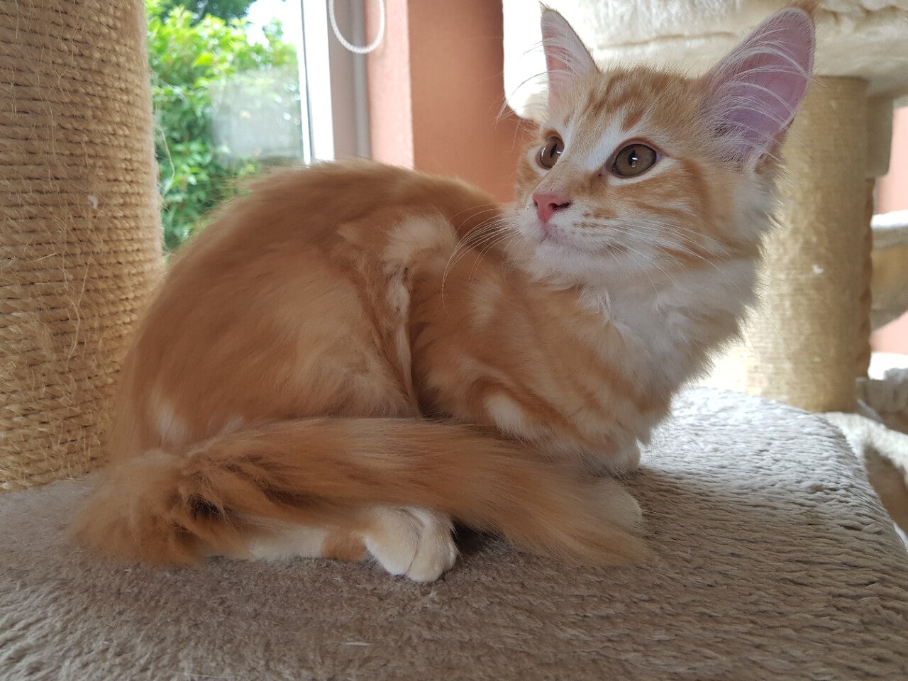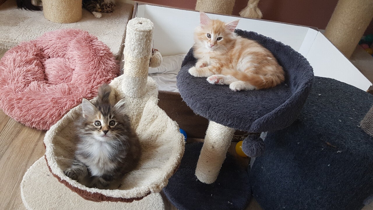 6-6-2022: Siri, het lieve en stoere kleine ding, is ook al weer 7 weken. Ze is de kleinste van het stel na zus Signe. Betekent wel dat ze hard door alle kieren en gaten heen kan racen wat haar grotere broers niet kunnen. Siri is in 1 week 126 gram gegroeid en weegt nu 728 gram. Het aanstaande personeel van zowel Siri als Synne, de gezusters gaan samen verhuizen, heeft ze ook al bij op schoot gezeten. Nou ja gezeten...geslapen en gesnurkt! Ze weet ze nu al om haar pootje te winden.
