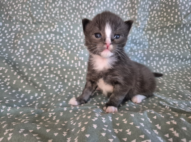 Wat ontzettend leuk om te zien, hoeveel hij op zijn mama lijkt! Zelfde koppie, zelfde profiel. Oke, met wit maar echt, net zijn mama. We hebben Arthur dus niet geboren zien worden en eigenlijk is hij geboren op 6 juli maar op de stamboom zal de 5e staan want de eerste bepaald. Arthur is geboren met 122 gram en is een blauw smoke wit. Net als bij zijn moeder Linde zag ik ook heel lange tijd een aftekening maar met meer wol in de vacht en na testen bleek dat het bij haar ghostmarking was geweest.
