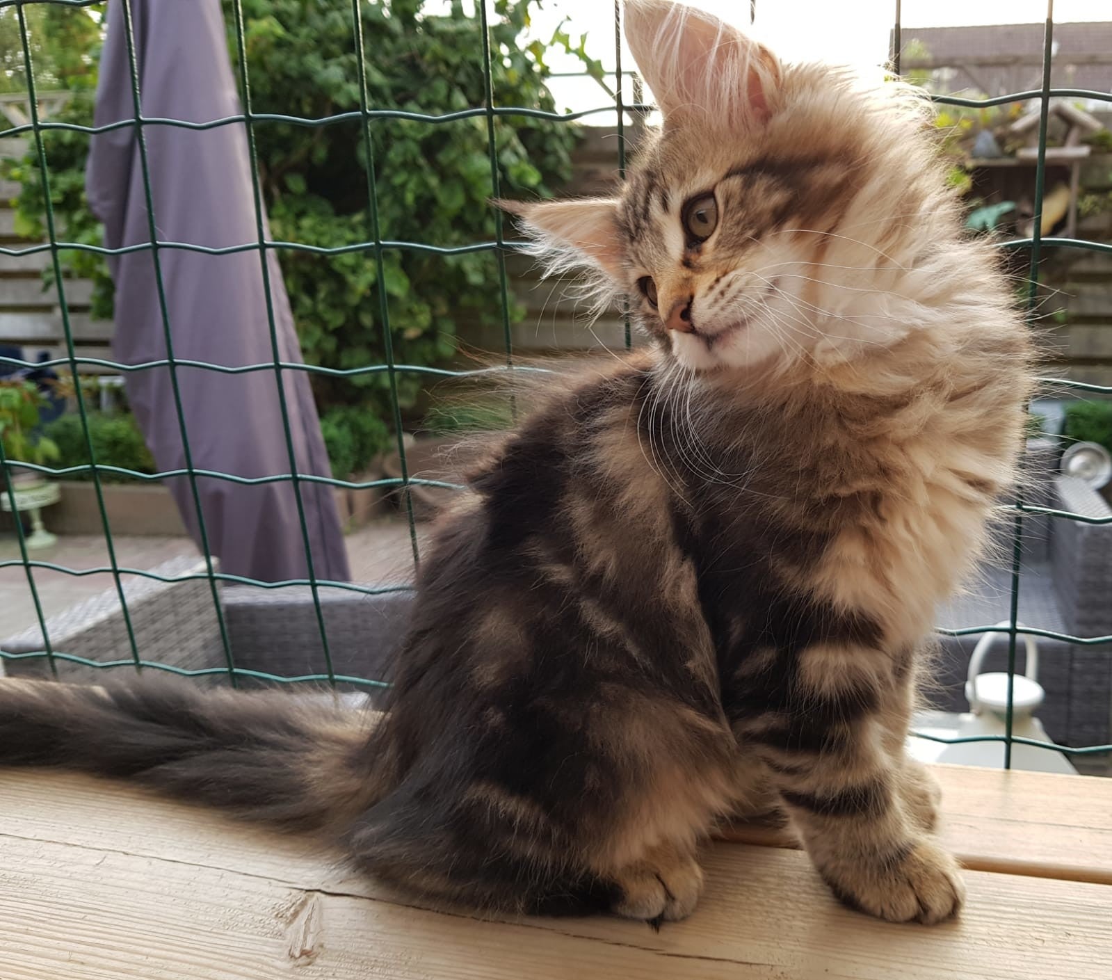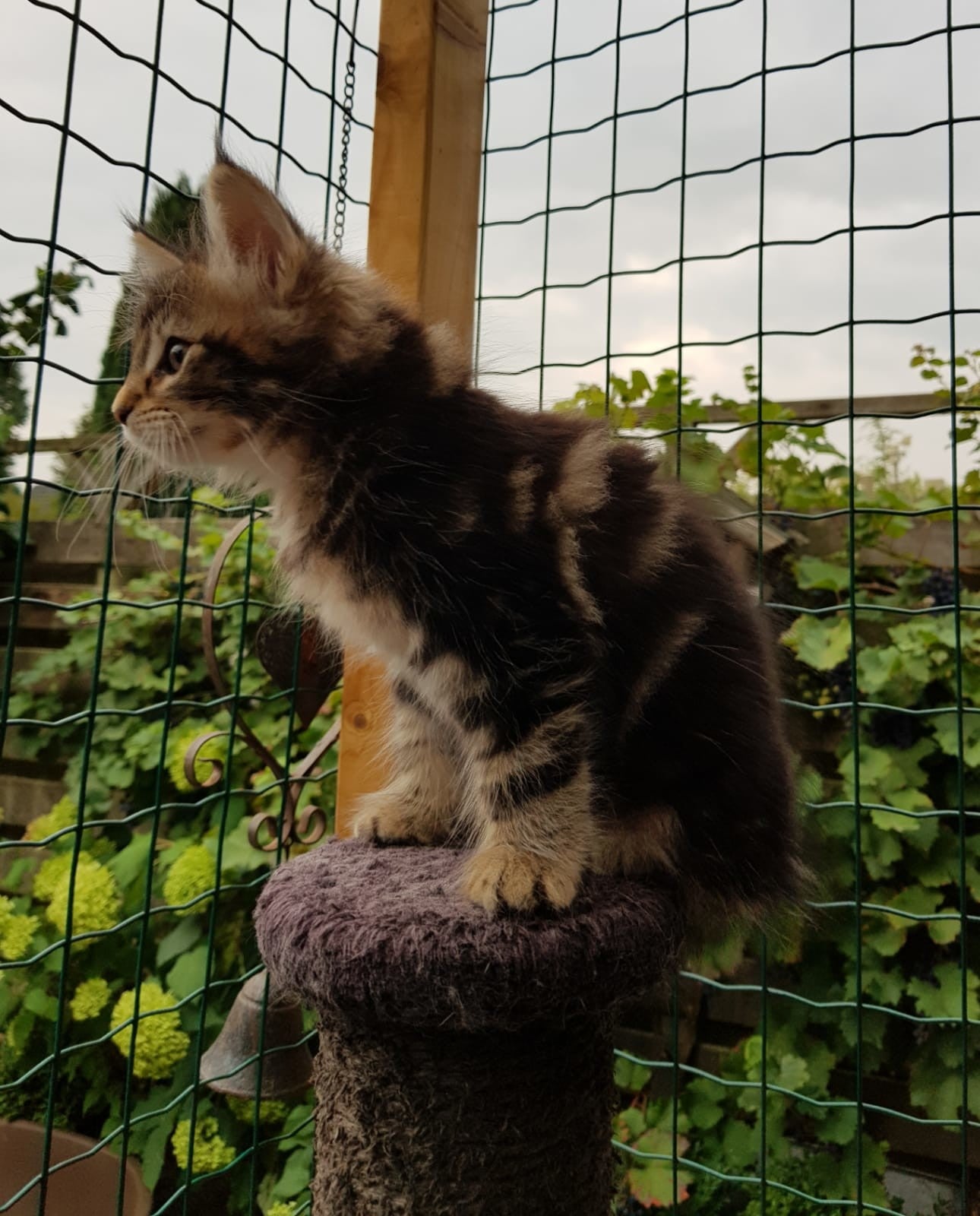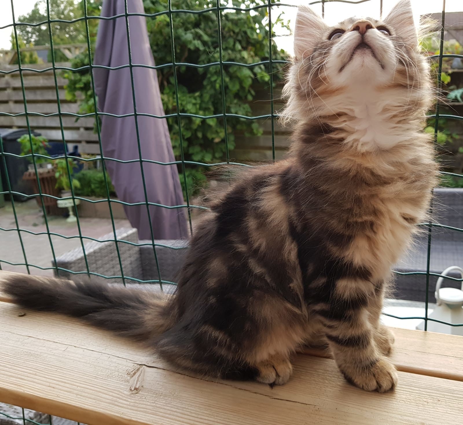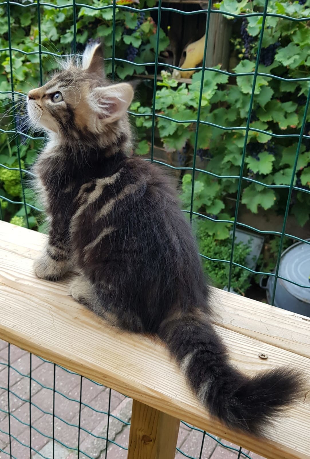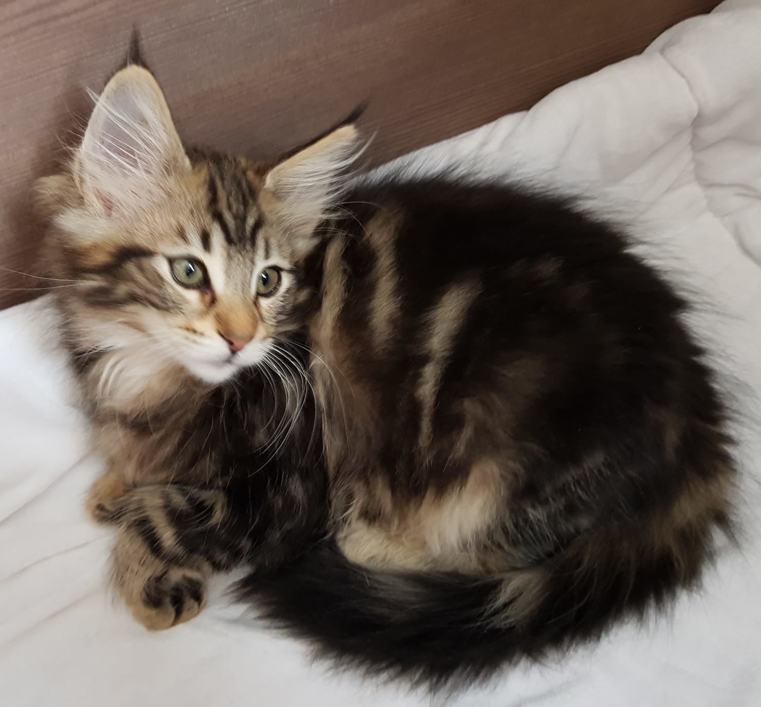 09-09-'18: stoere prinses vakre Lorelei doet wat ze wil. Ze racet net zo hard als haar grote broers en komt voor een hele snelle knuffel maar gaat dan gauw weer verder. Ze heeft het druk. Dit foto moment lukte dus ook alleen maar toen ze net wat wakker werd. Haar kleur ontwikkelt zich mooi, steeds meer verdeling hoewel ze op de foto's nog best donker lijkt. Ze is ook de donkerste maar als je haar ziet rennen beginnen de vlakken en strepen voor ons zichtbaarder te worden. Vakre Lorelei weegt 1,340 kg.