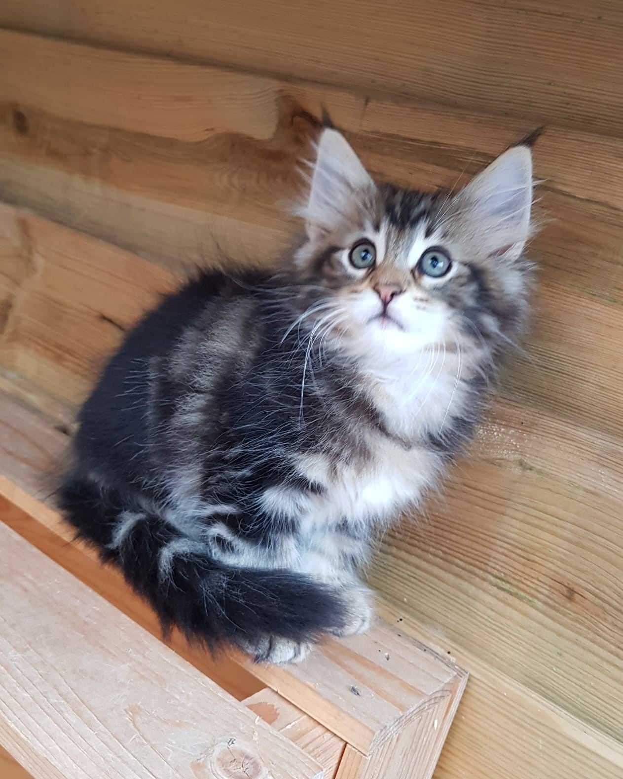 23-09-'18: Diegene die qua karakter het meest op mama lijkt is vakre Lorelei. Iets voorzichtig, kat uit de boom kijken, lief en gevoelig. Qua uiterlijk lijken ze niet op elkaar en des te grappiger vind ik het dat ze zo op elkaar lijken. Tot het op het eten aankomt! Waar vakre Lindis anderen voor zal laten gaan want haar beurt komt vast en zeker , zit Lorelei al grommend haar plek bij het eten te verdedigen. Met succes. Dit doet ze altijd al maar waarom? Dat zullen we wel nooit weten. Ze komt niks te kort en doet het qua gewicht dan ook prima met haar 1,670 kg, 13 weken oud.
