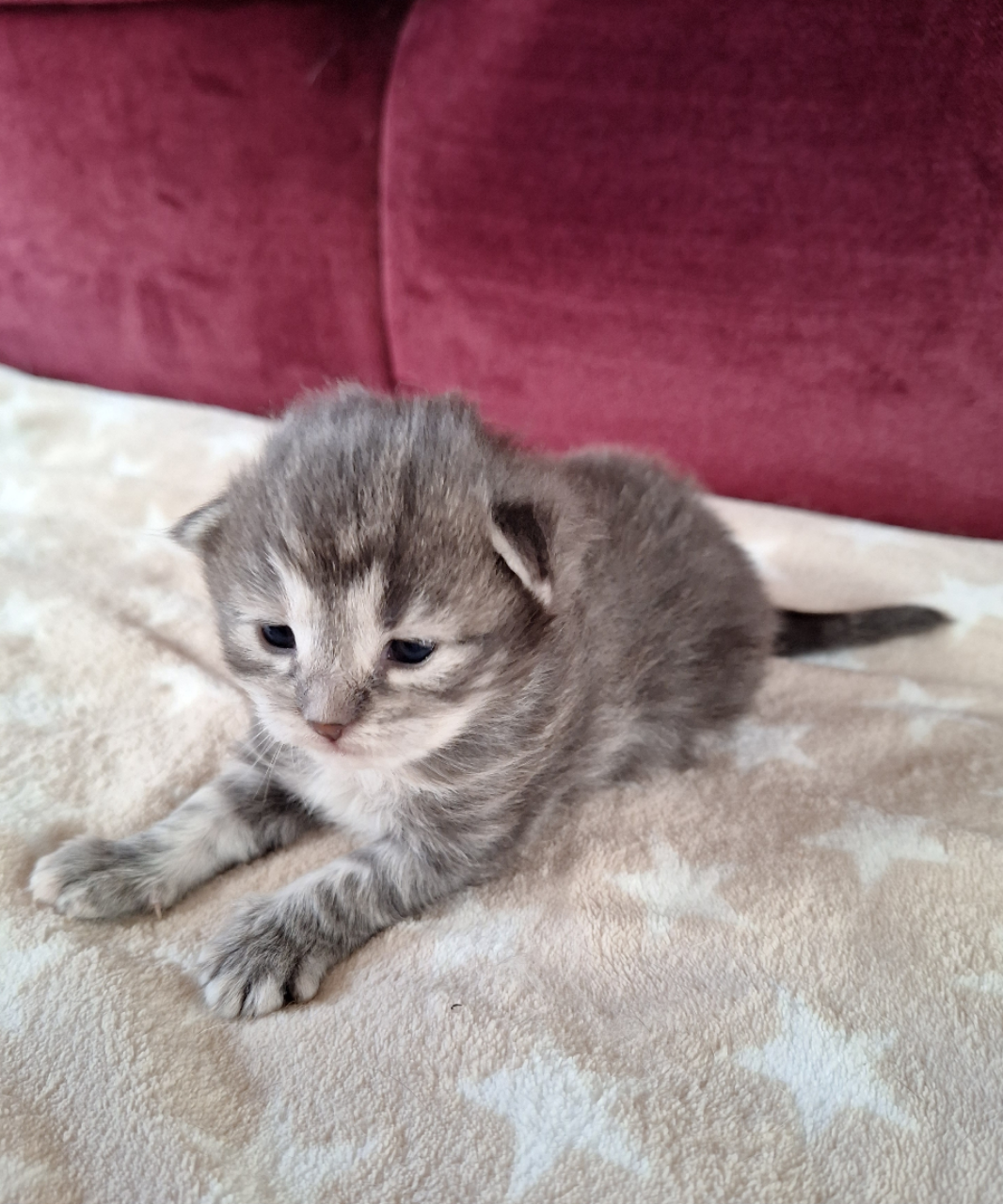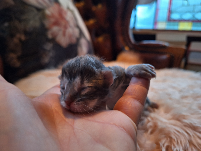 Oh jee, weer zo'n mooie dochter! Totaal anders maar oh oh oh we zijn weer verliefd! Liv werd als 4e geboren, in de 2e bevallingsdag, op 10-11-2023, met een prachtig geboorte gewicht van 117 gram. Ze is blauw tortie tabby gemarmerd, NFO g 22.